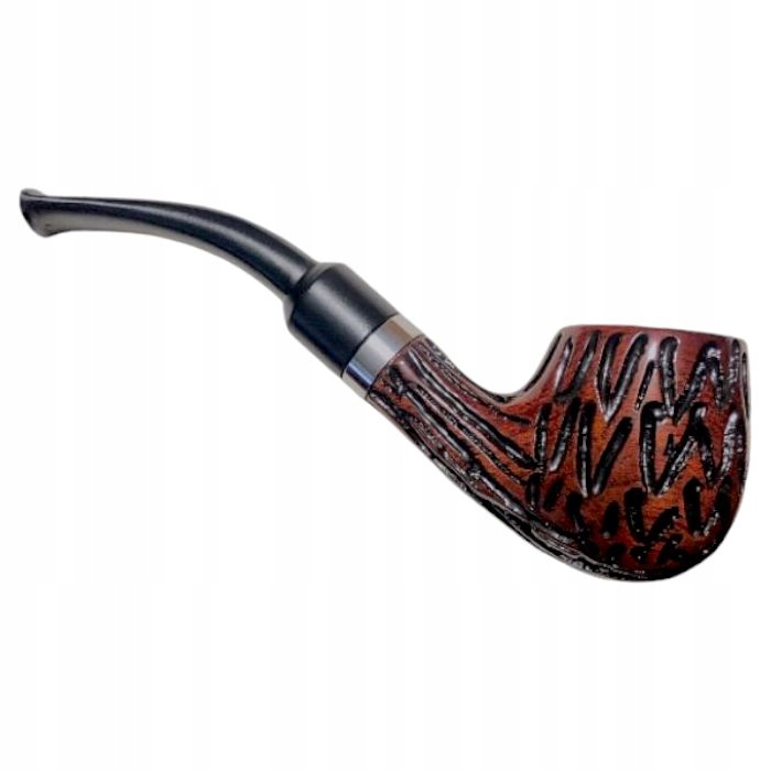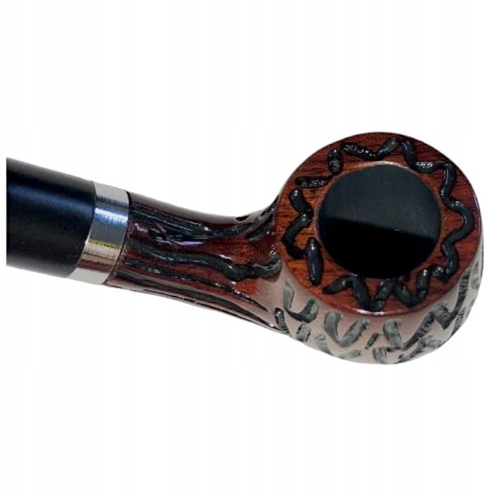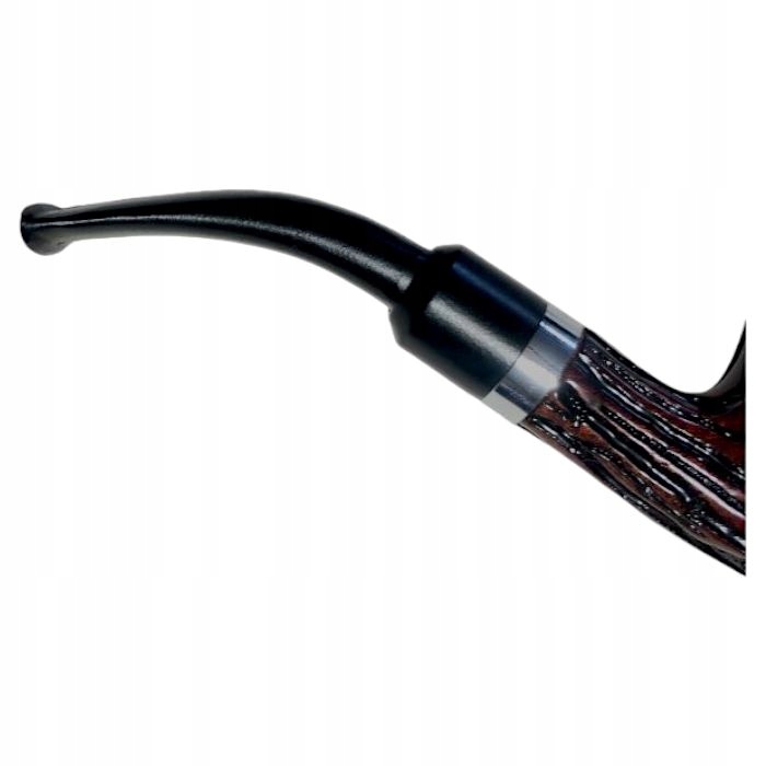 Неповторимый внешний вид трубки подчеркивает посеребренное кольцо на конце горлышка, который идеально сочетается со всей конструкцией. b>Изогнутый мундштук с 9-миллиметровым фильтром отличается широким прикусом и изготовлен из прочного акрила, что обеспечивает не только комфорт, но и долговечность.