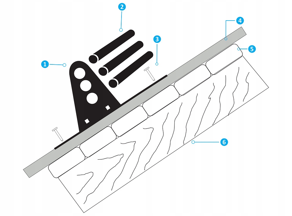 Полная система снежных труб "U" состоит из ручек с 1,2 или 3 отверстиями и снежной трубкой. Он предназначен для установки на наклонных крышах, покрытых плоским или трапециевидным листом, черепицей, битумным, кровельным войлоком и т. Д. Монтирование ручки лучше всего изготовлен в линии стропила (контратака или доски) с болтами с Ø6 мм и длиной, обеспечивая соединение с конструкцией крыши, например, В некоторых случаях, при необходимости, должна быть составлена вспомогательная структура (например, вспомогательный патч). Ручка U должна быть найдена по всей его длине. Установка трубы в ручку выполняется путем вставки их в специальные отверстия, расположенные на поверхности кронштейна, эта операция не требует использования винтовых соединений.