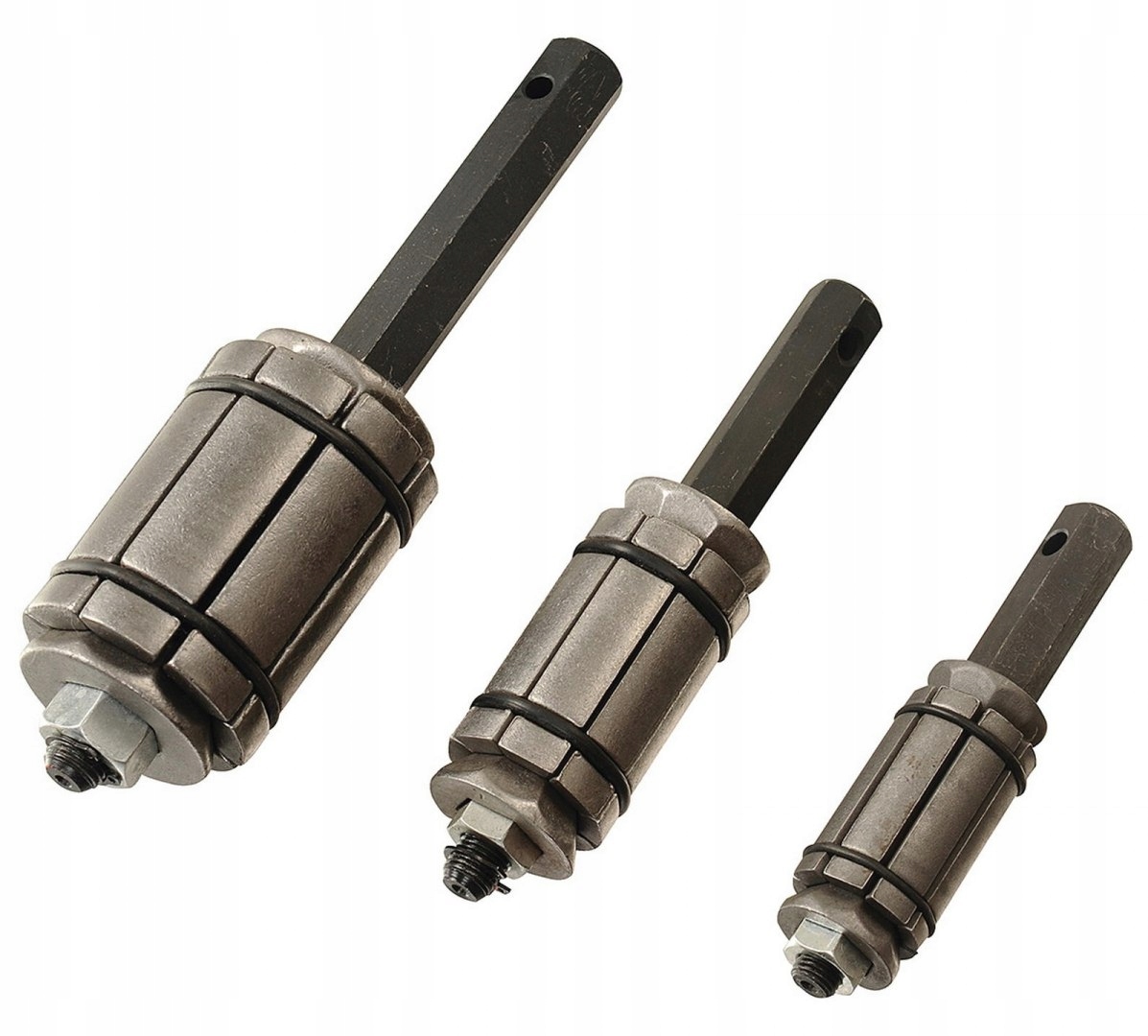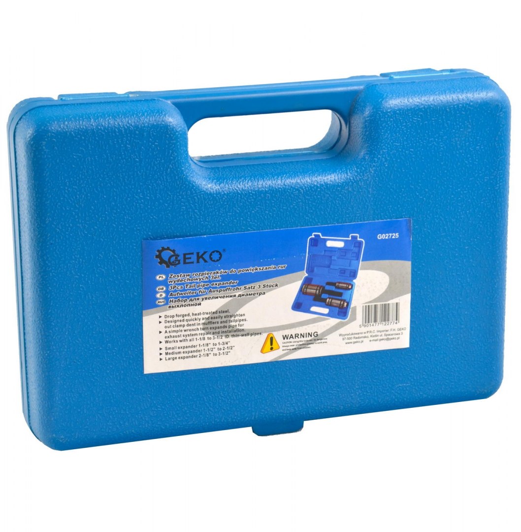 Профессиональный набор расширителей, предназначенный для ремонта круглых профилей труб или увеличения их диаметра с целью соединения двух труб одинакового диаметра. Подходит, среди прочего: для выхлопных труб, глушителей, каталитических нейтрализаторов.