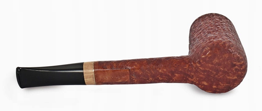 Трубка высочайшего качества, изготовленная в мастерской Михала Павляка. Поверхность теплого вишнево-красного цвета прошла тщательную пескоструйную обработку. Гладкий край демонстрирует текстуру древесины. Головка у основания сплющена, поэтому трубу можно использовать без использования дополнительной подставки. Сплющенная горловина внизу подписана логотипом производителя и номером модели. Кольцо между грифом и коротким эбонитовым мундштуком изготовлено из оливкового дерева в сочетании с очень тонкой вставкой из высоконикелевой латуни. Дымоход без предварительной карбонизации вместит большее количество вашего любимого табака. Все это выглядит чрезвычайно минималистично и современно.