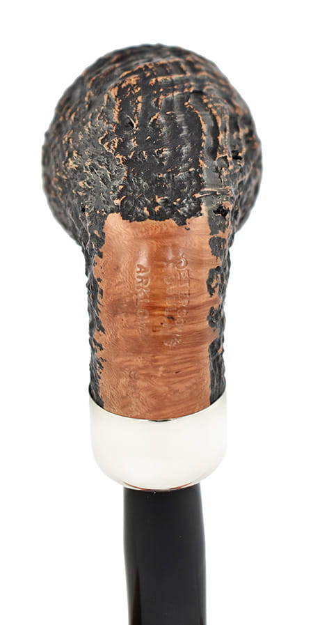 Уникальная трубка от ирландской компании Peterson of Dublin родезийской формы. Головка покрыта точной пескоструйной обработкой и декоративным элементом в виде кольца с двойным рифлением. Высококачественный бриар с темно-коричневым отливом и многочисленными светлыми бликами. Гладкая часть в нижней части горлышка демонстрирует естественную текстуру бриара. Это место также подписано логотипом компании и названием модели – гарантия оригинальности. Ободок с плавно скошенными к внутренней части дымохода краями также остался гладким. Акриловый мундштук уникально сочетается с грифом, украшенным толстым серебряным кольцом, придающим ему блеск и элегантность. Предварительно карбонизированный дымоход.
