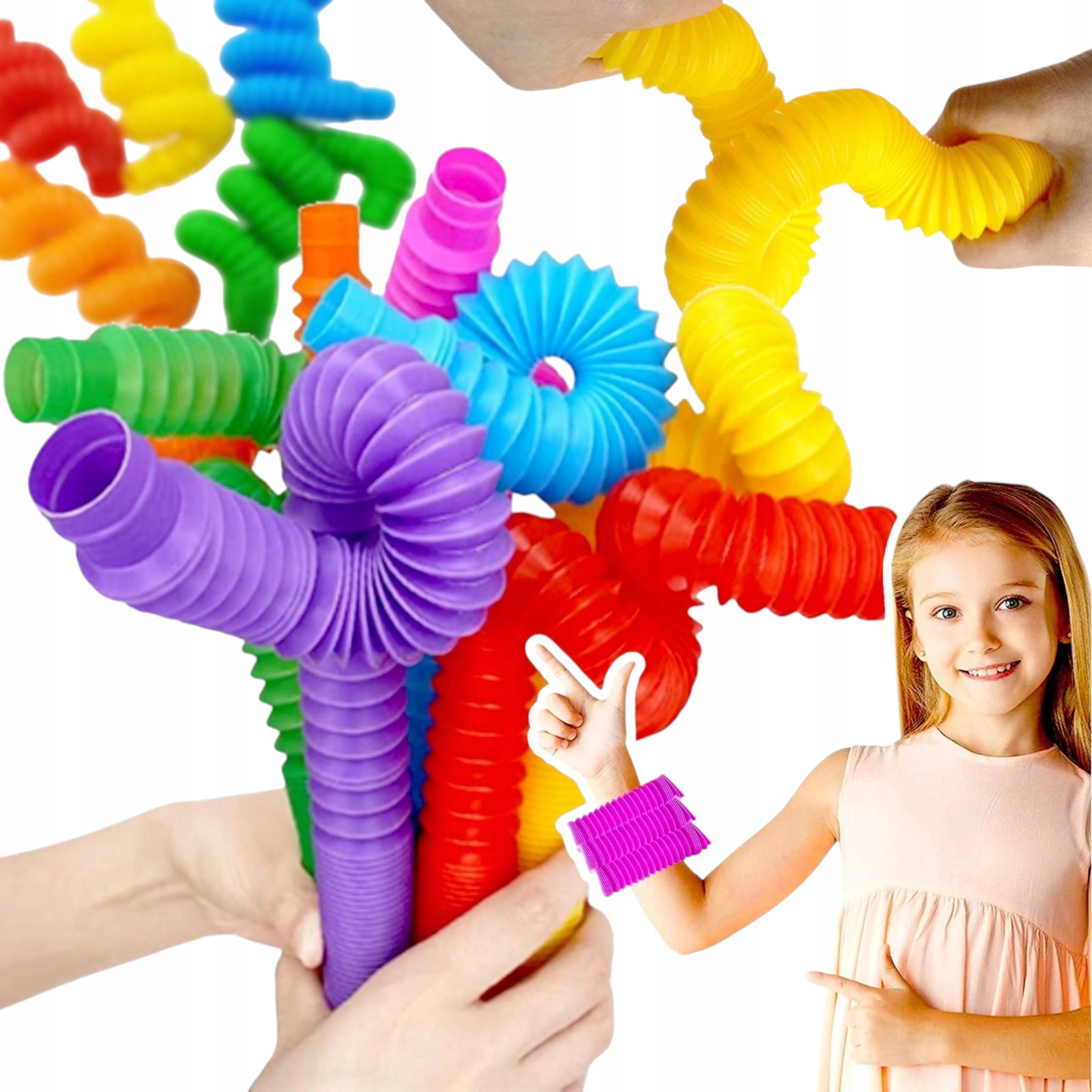 Сенсорные трубки - это уникальная игрушка, которая поддерживает моторную разработку, координацию двигателя и сенсорную интеграцию у детей. Благодаря возможности растяжения, изгиба и соединения, трубки позволяют создавать бесконечное количество форм и структур. В то же время, тонкие звуки, изданные во время использования, задействуют чувство слуха, что делает игрушку особенно привлекательной для самых молодых. Эта форма развлечения развивает творчество и помогает в практике точных движений рук, одновременно обеспечивая большую радость.