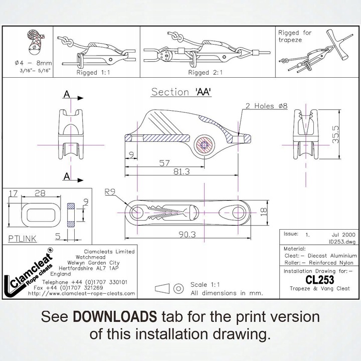 knaga clamcleat cl253 может использоваться, например, Трапециализация, тропа Бом, натяжение стержня, регулировка передней и нижней симпатии, трапециевидные линии виндсерфинговых плат ...