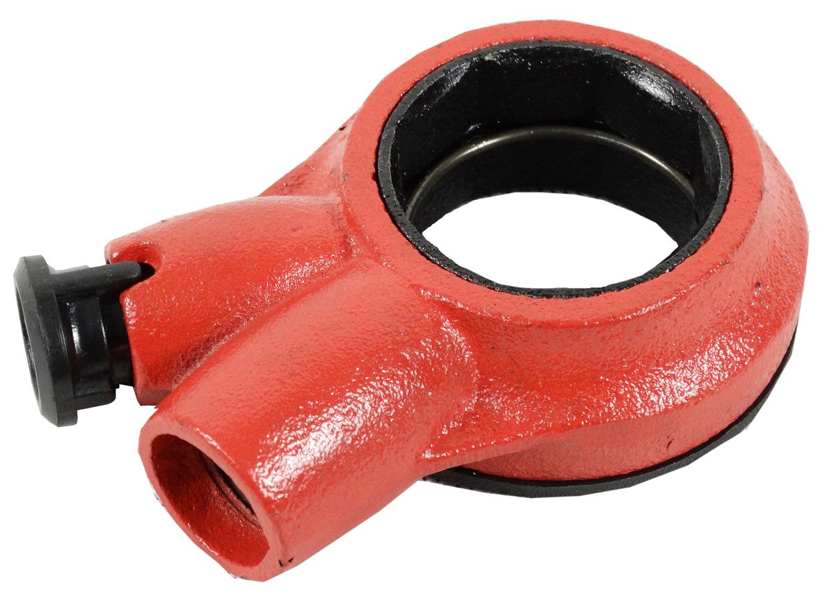 Трещотка, предназначенная для резьбонарезного станка. Прочная и прочная чугунная конструкция трещотки позволяет ей работать при больших нагрузках. Стандартный монтажный держатель позволяет работать с матрицами размеров 1/4"; 3/8"; 1/2"; 1"; 1 1/4".