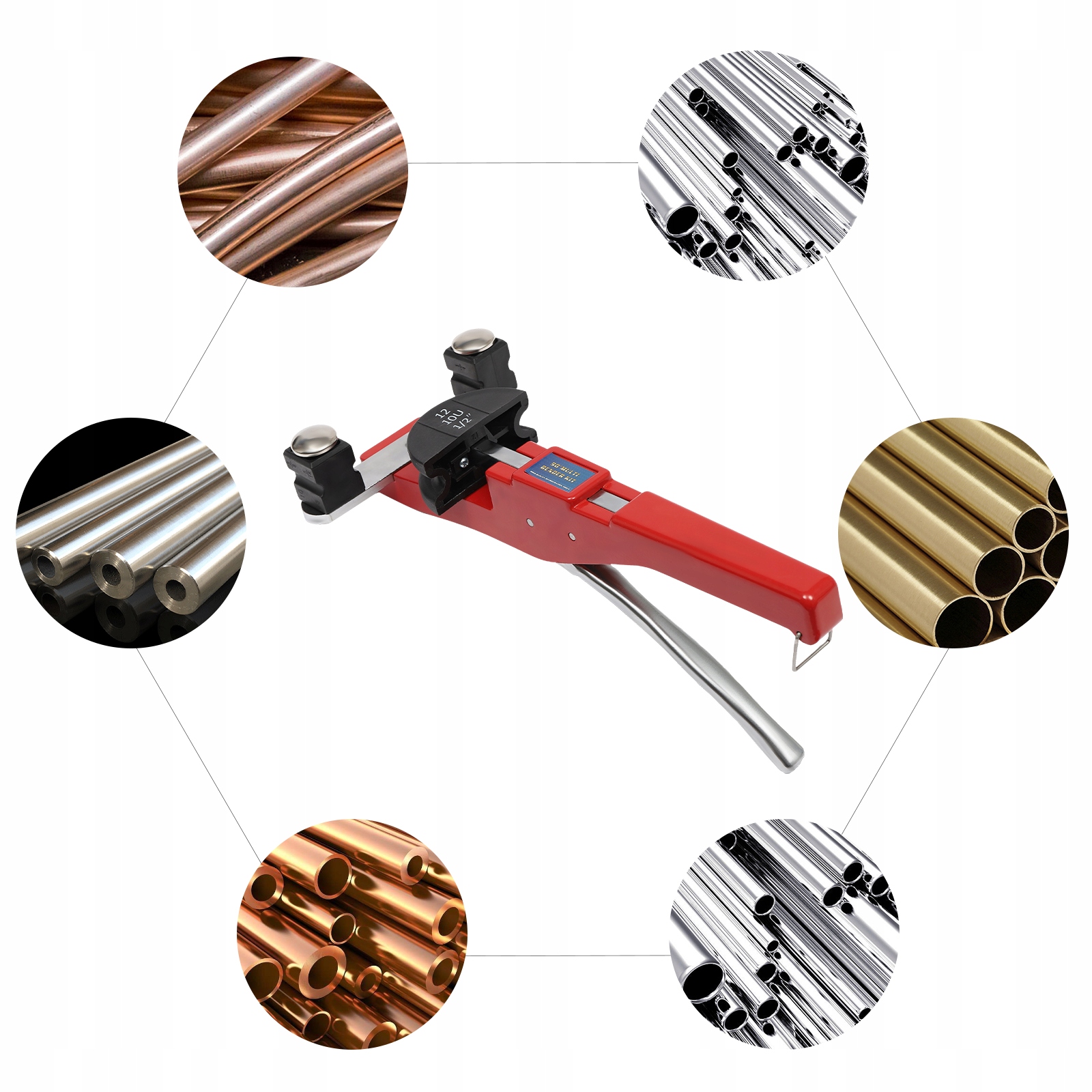 Диапазон диаметров гибки: 6 мм (1/4 дюйма), 8 мм (5/16 дюйма), 10 мм (3/8 дюйма), 12 мм (1/2 дюйма), 16 мм (5/8 дюйма), 19 мм (3/4 дюйма), 22 мм (7/8 дюйма).