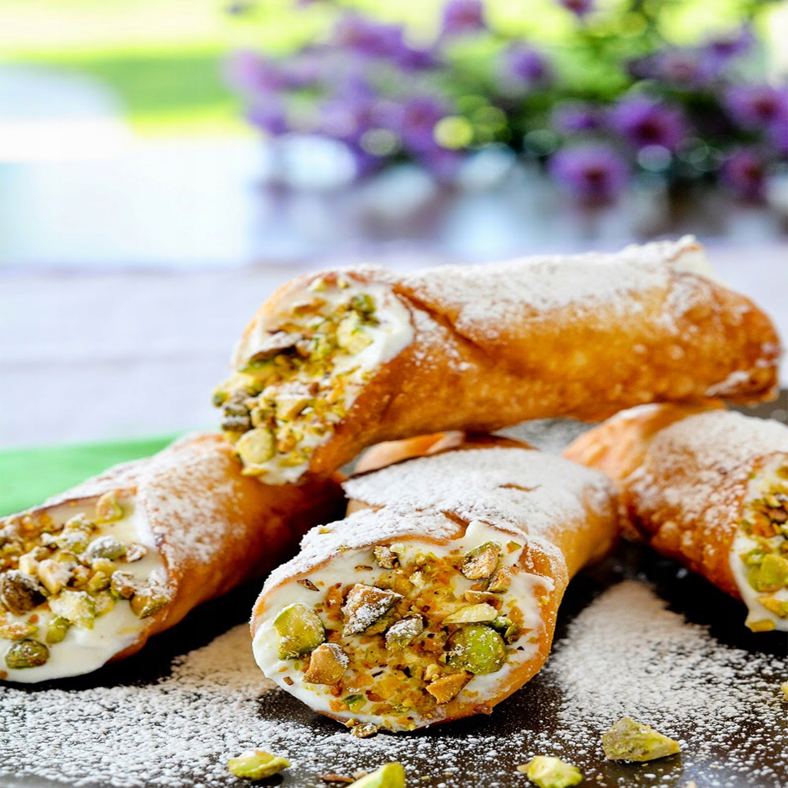 Канноли — фирменное блюдо Сицилии. Это аппетитные трубочки из очень хрустящего теста, наполненные бархатно-мягким кремом на основе сладкого сыра рикотта. Открытые края трубочек посыпаются рублеными фисташками, которые на Сицилии входят во многие сладкие и соленые блюда. Раньше канноли готовили только в период карнавала, как наши фаворки или пончики, а теперь их можно купить в любое время года в каждой самой маленькой сицилийской кондитерской.
