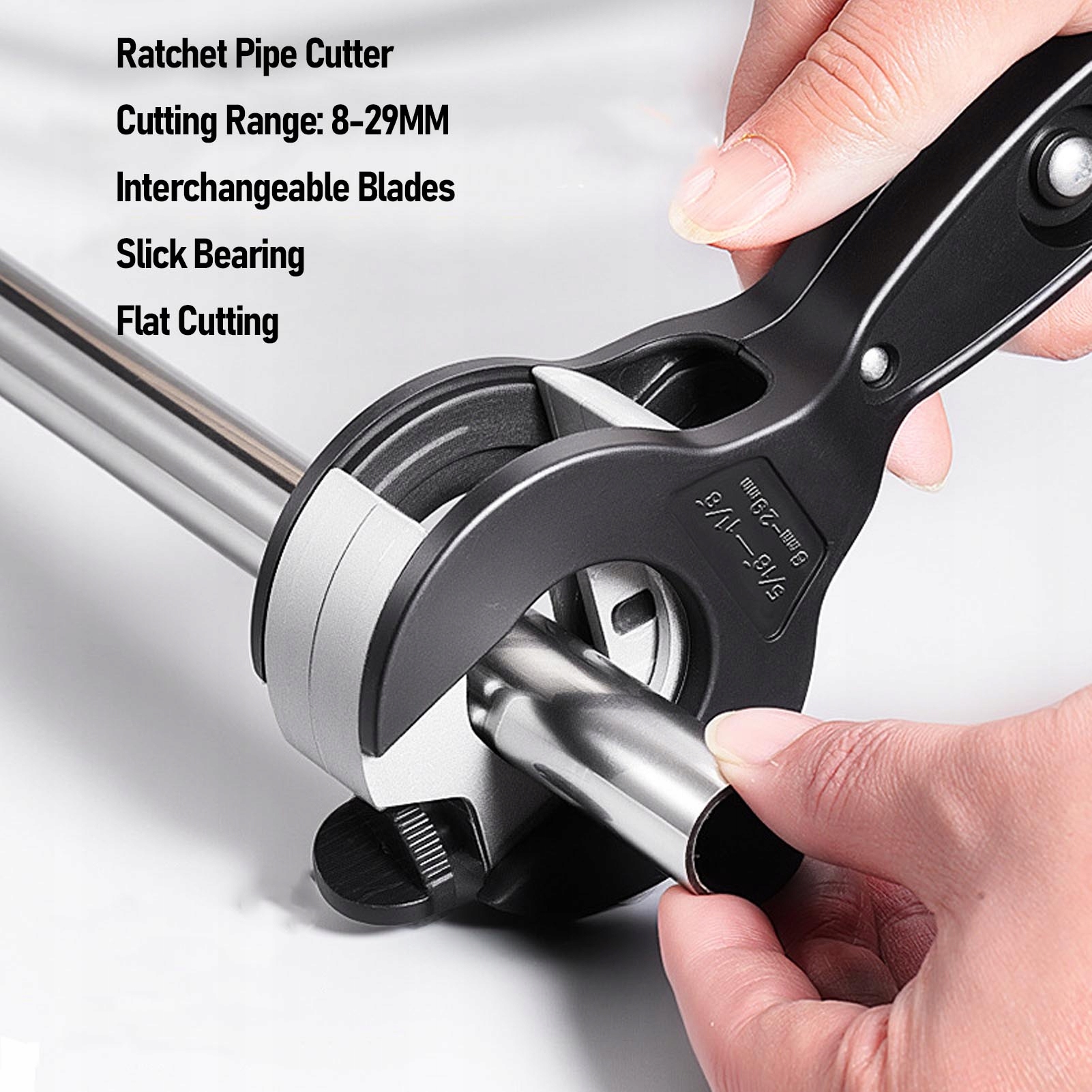 1. Компактный дизайн: труборез для металлических труб с храповым механизмом специально разработан для резки труб в ограниченном пространстве. Легко режет трубы из меди, ПВХ и мягкого металла диаметром от 5/16 до 1 1/8 дюйма (8–29 мм), что делает его пригодным для работ, где доступ ограничен, например, для резки труб у стен.