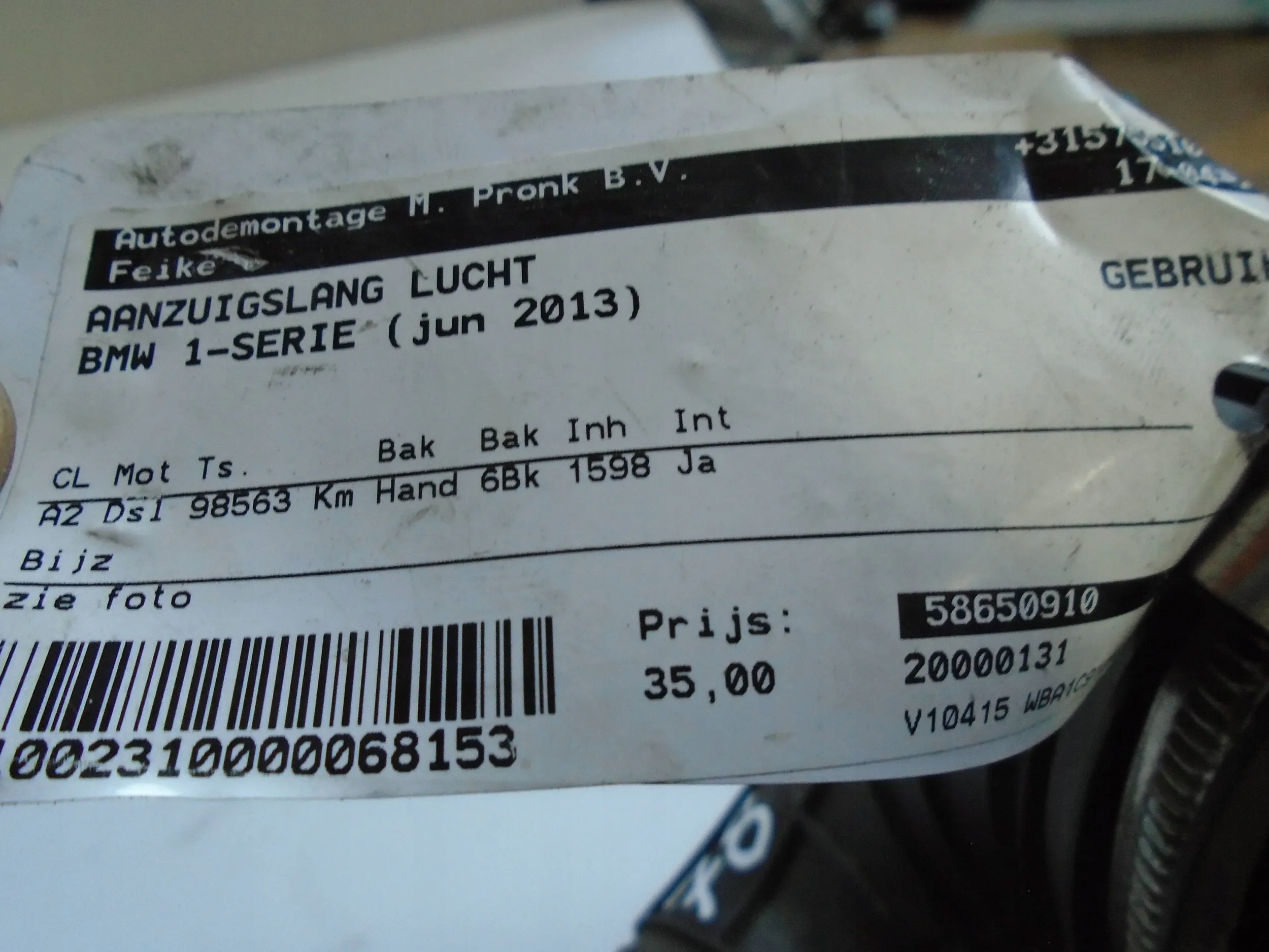 Трубный воздушный кабель 58650910 BMW 1 E81 E87