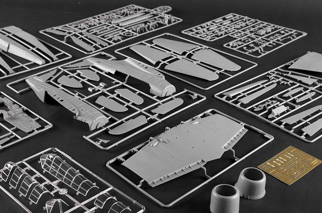 Пластиковая модель для склейки и покраски с декалями для нескольких вариантов окраски и подробной иллюстрированной инструкцией по сборке.