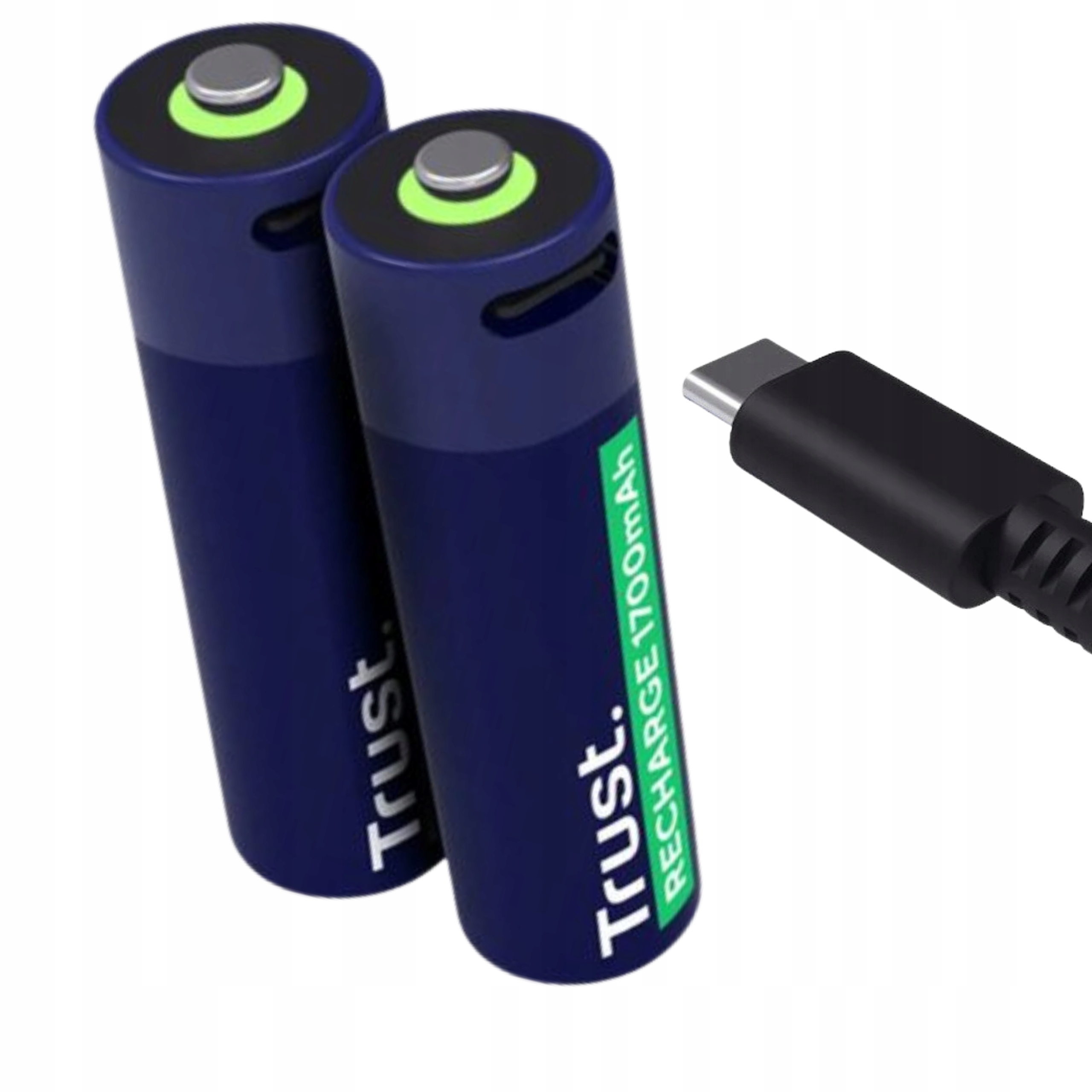 2 аккумуляторные батареи типа AA 1700 мАч USB-C TRUST 1,5 В, заряжаемые через USB-C