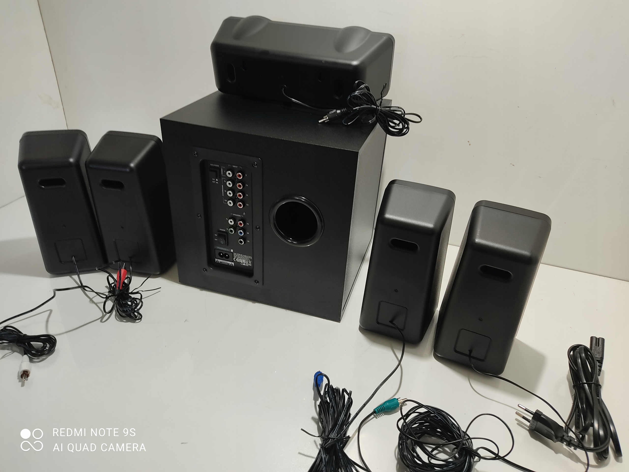 Набор динамиков 5.1 с деревянным субвоэром с общей мощностью RMS с рейтингом 90 Вт (пиковая мощность: 180 Вт)