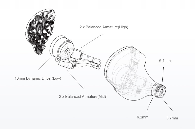 это гибридные наушники в конфигурации 1DD+4BA с композицией. Композит. По сравнению с HEX первоначальное предположение о дизайне было для дальнейшего улучшения производительности в высокочастотном диапазоне, сохраняя при этом разумную и эффективную конфигурацию, а также желание предоставить пользователям зрелые гибридные наушники со структурой с 3-движением по разумной цене. над басом. Благодаря зрелой технологии производства и обработки, это устройство с внутренней магнитной схемой характеризуется чрезвычайно низкими искажениями, обеспечивая NOVA лучшее качество BASS.nova имеет композитный, двойной банкнотический преобразователь с полным фитингом с увеличенным размером, который отвечает за средние и частичные полосы частот, используемый динамический преобразователь, а высокочастотная полоса также может оставаться очень совместимой с целью конструкции.