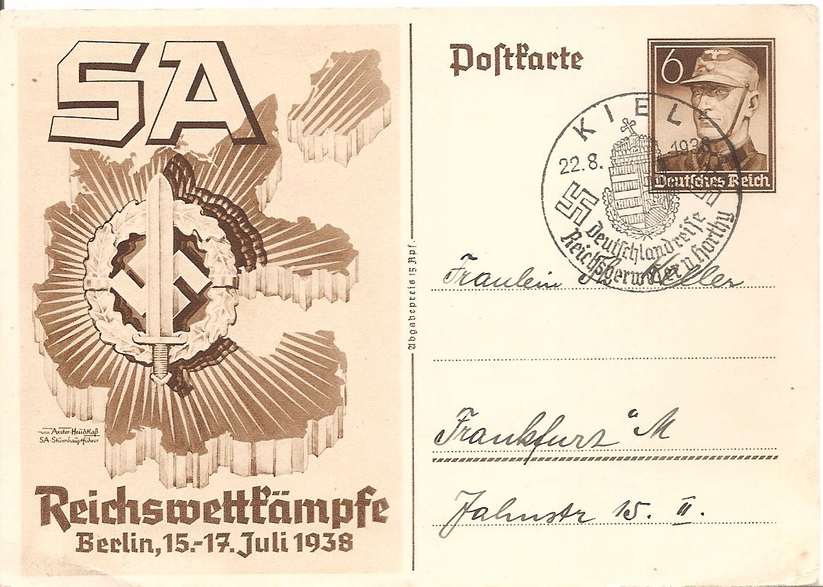 TRZECIA RZESZA -postkarte -REICHSWETTKAMPFE BERLIN 1938 rok stempel