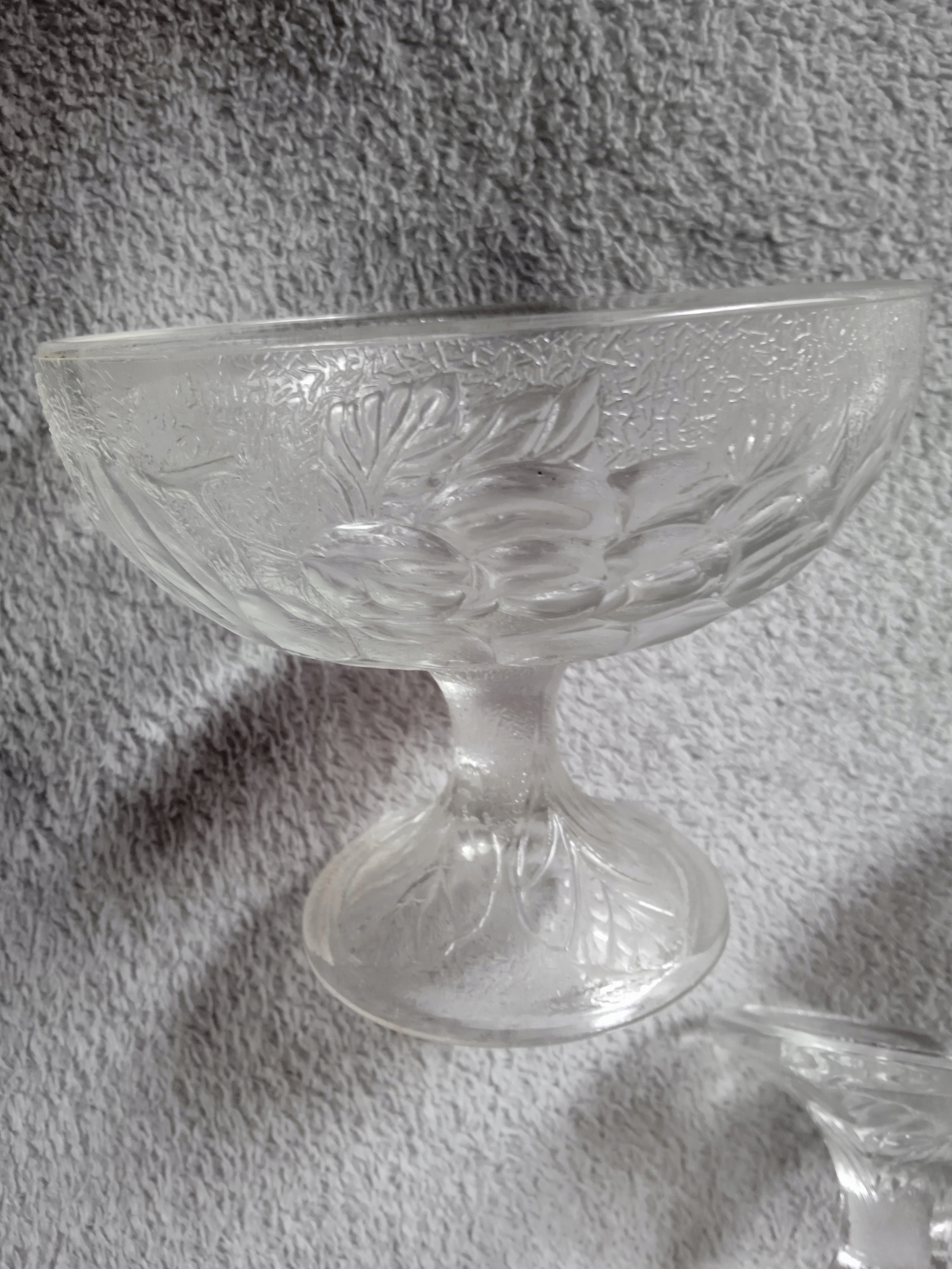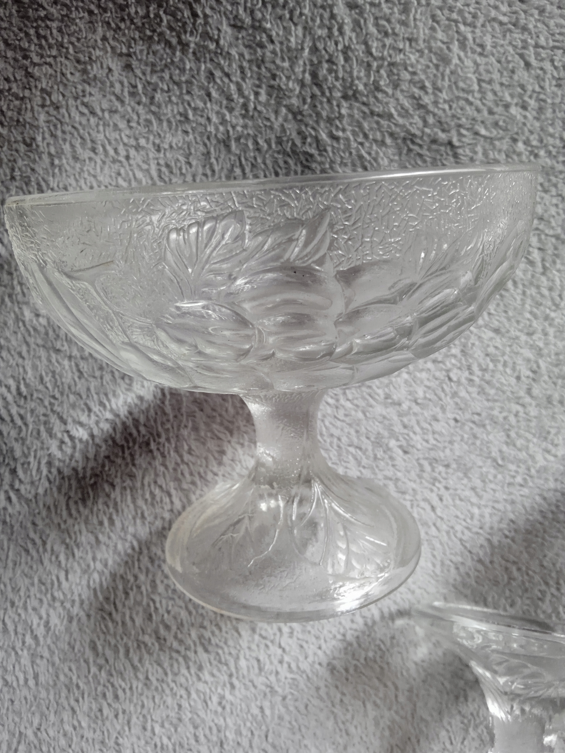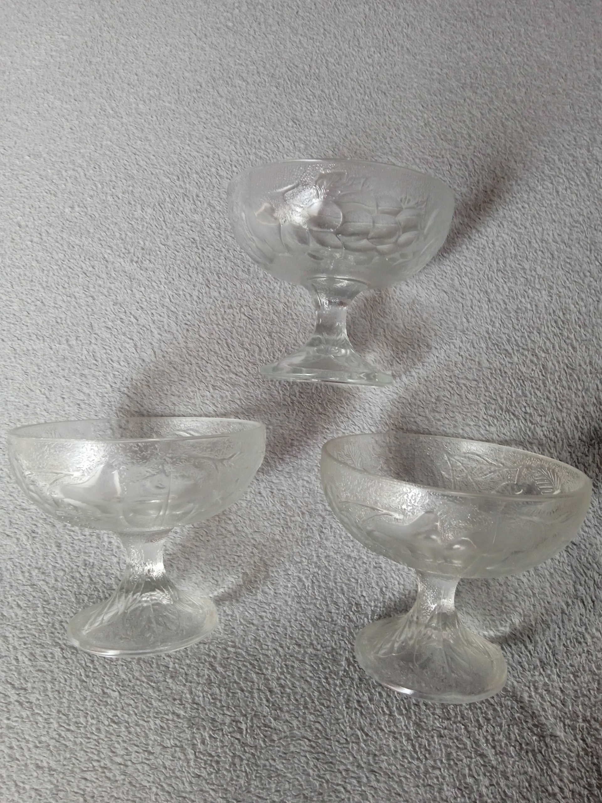 Предлагаю на продажу набор из трех стаканчиков для мороженого и десерта производства чешского стекольного завода Либоховице 1970-х или 1980-х годов. Чашки изготовлены из прозрачного прессованного стекла, со вкусом украшены фруктовыми мотивами - клубникой, вишней и фруктами. сливы. Состояние очень хорошее-без видимых царапин и вмятин. Высота 10,2 см. Диаметр чаши 12,2 см. Диаметр стопы 7,4 см. Цена указана за комплект из 3 штук.