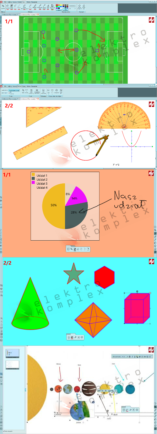 Программное обеспечение Avtek Interactive Suite дополнительно увеличивает возможности использования интерактивной доски. Программное обеспечение предлагает множество интересных функций, которые позволяют лучше использовать интерактивные функции доски, делая занятия, проводимые с ее использованием, более интересными и увлекательными.