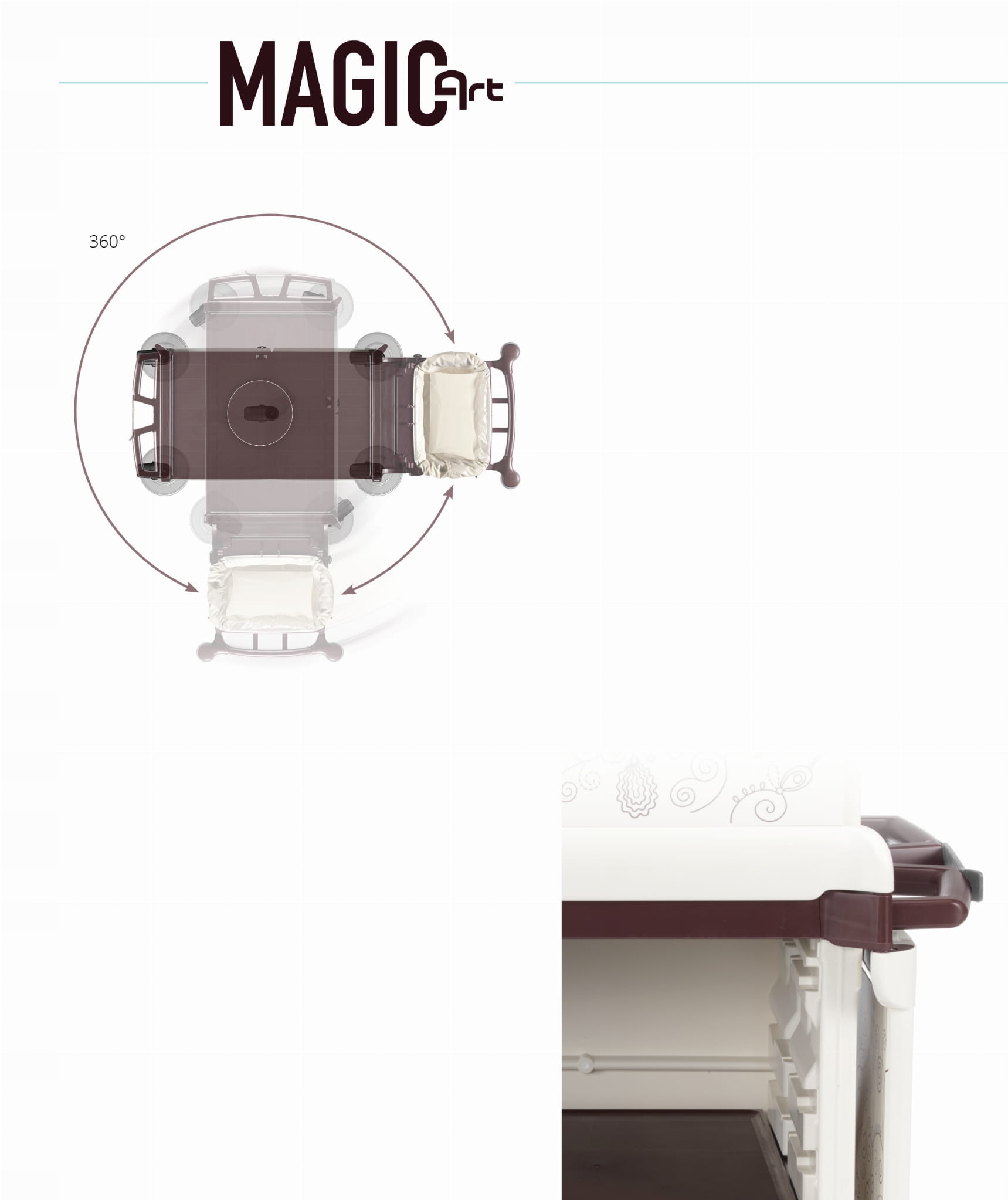 Все коляски TTS серии Magic Hotel изготовлены с исключительным вниманием к деталям, из переработанного полипропилена, который отличается высокой прочностью и устойчивостью к кислотам и погодным условиям.