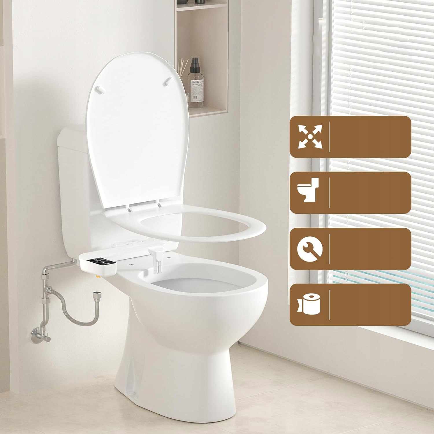 Сверхтонкая насадка для биде: Насадка для унитаза-биде, изготовленная из прочного материала ABS, обеспечивает структурную стабильность и эстетичный внешний вид. Простой процесс установки включает в себя все необходимые компоненты для портативного биде.