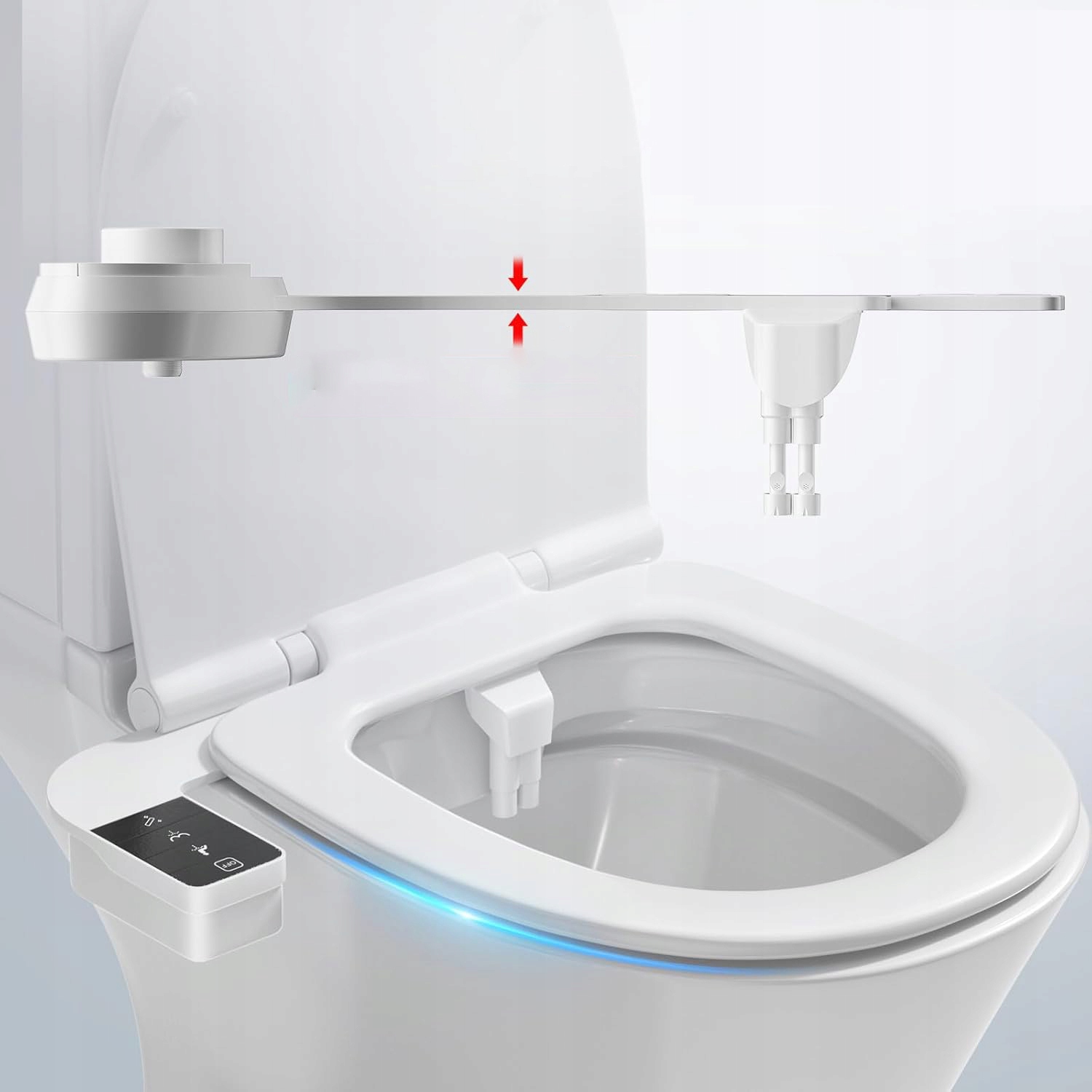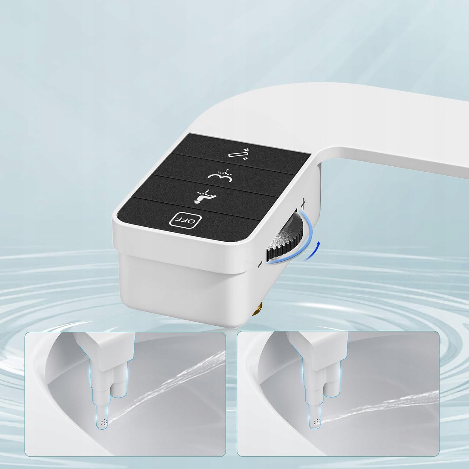 Двойные насадки: Сиденье для унитаза-биде оснащено двойными насадками для очистки передней и задней части тела, адаптированными к потребностям обоих полов. Обеспечивает более тщательную очистку, значительно сокращая расход туалетной бумаги и обеспечивая более полную и бережную стирку.