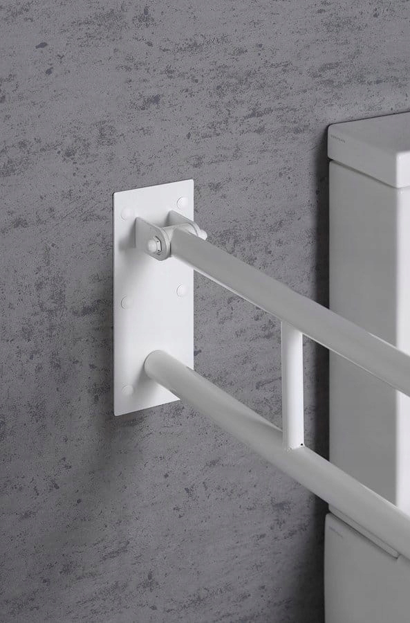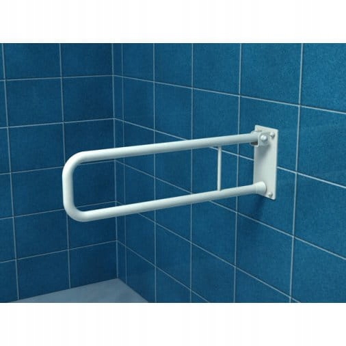 Перила для людей с ограниченными возможностями, изогнутые, наклоняемые, настенные, длиной 600 мм, общего назначения, изготовлены из трубы из углеродистой стали диаметром 25 мм, покрыты порошковой эмалью белого цвета. Мы используем этот тип поручней в зоне умывальника, душа и туалета.