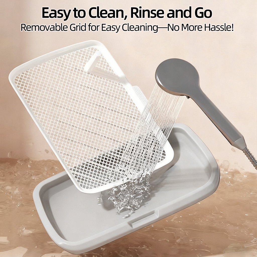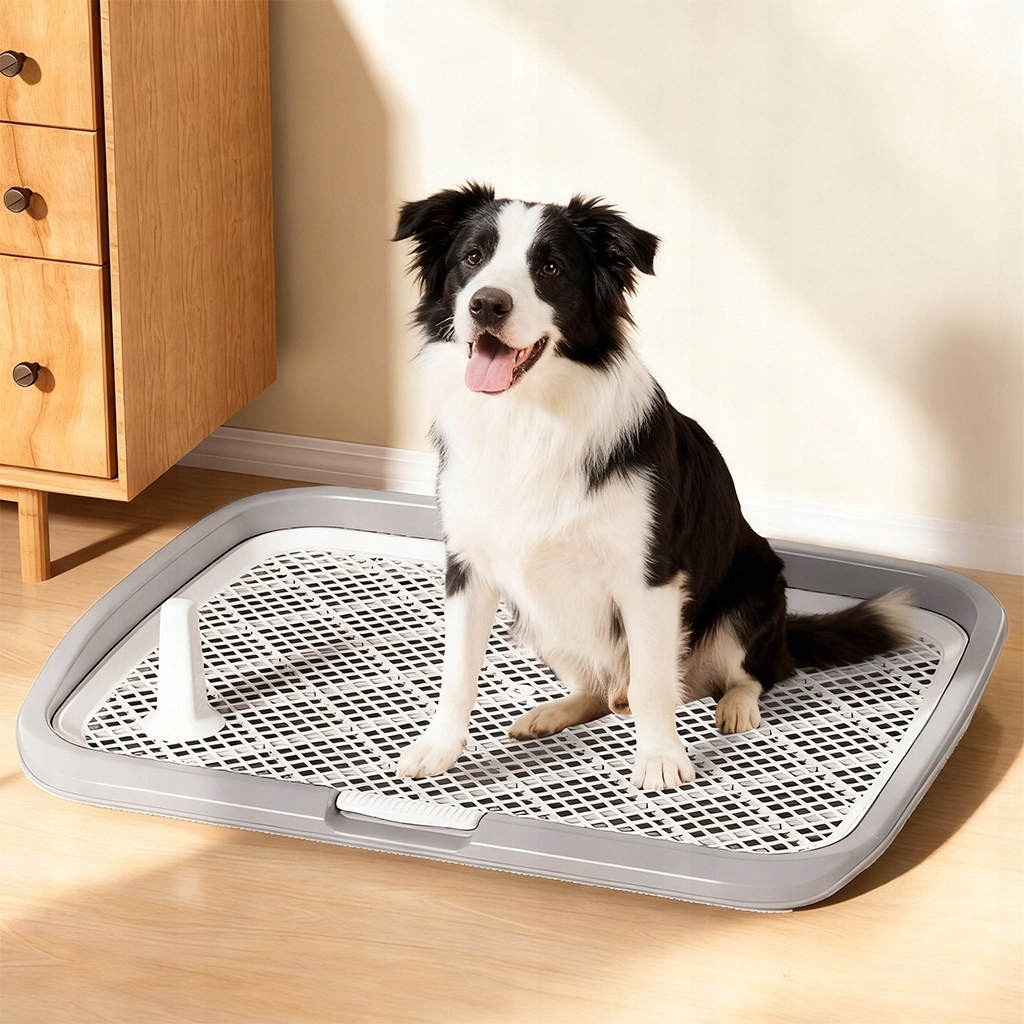 Туалет для собак с ограждением 63х48см, серый - Предотвращает разбрызгивание