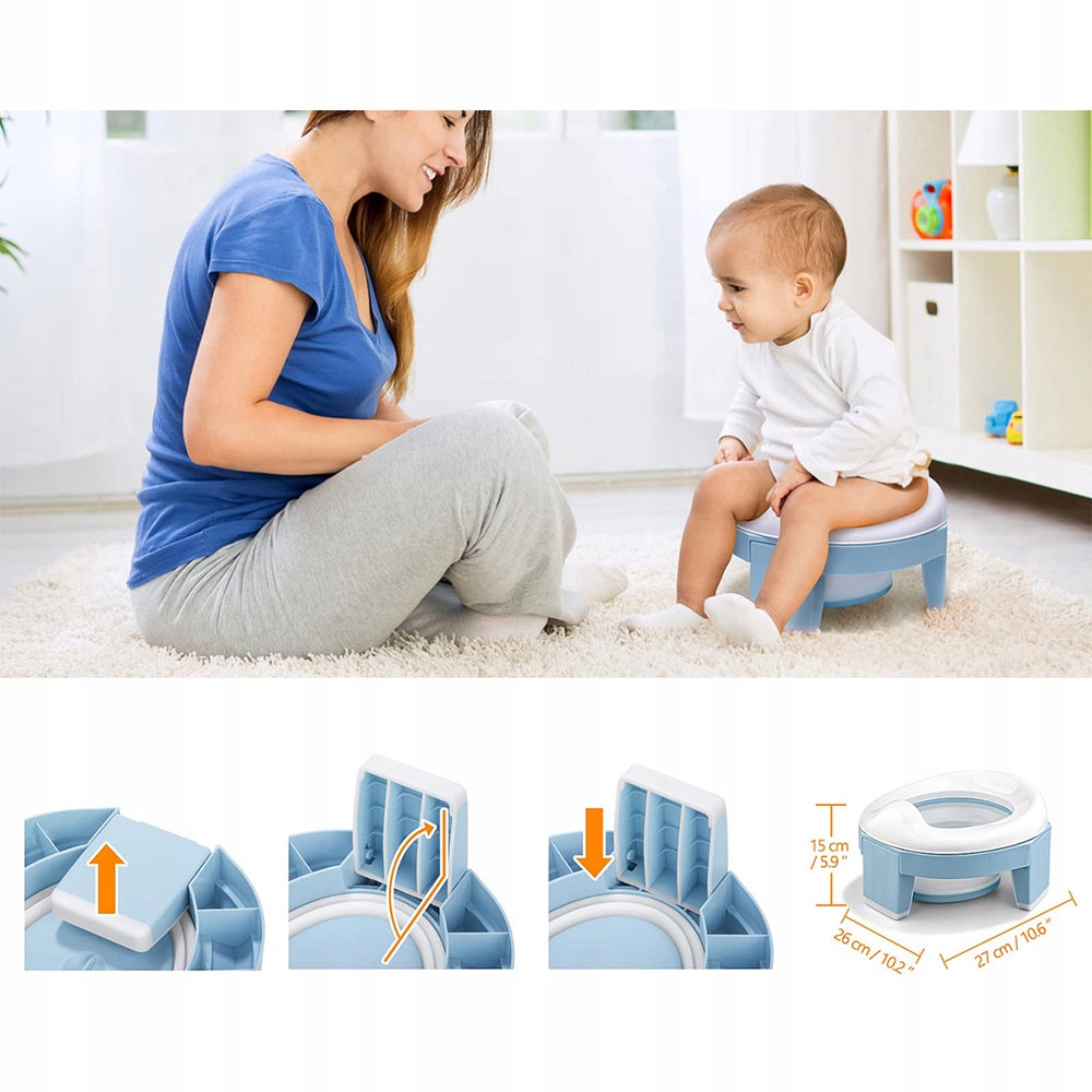 Дорожный горшок 3 в 1, позволяющий научиться ходить на унитазе. Дети могут использовать его дома или во время путешествия. Ножки надежно фиксируются и могут использоваться как отдельный туалет в случае чрезвычайной ситуации или как детский туалет. Резиновую ножку можно безопасно поставить на пол или на унитаз без риска поскользнуться.
