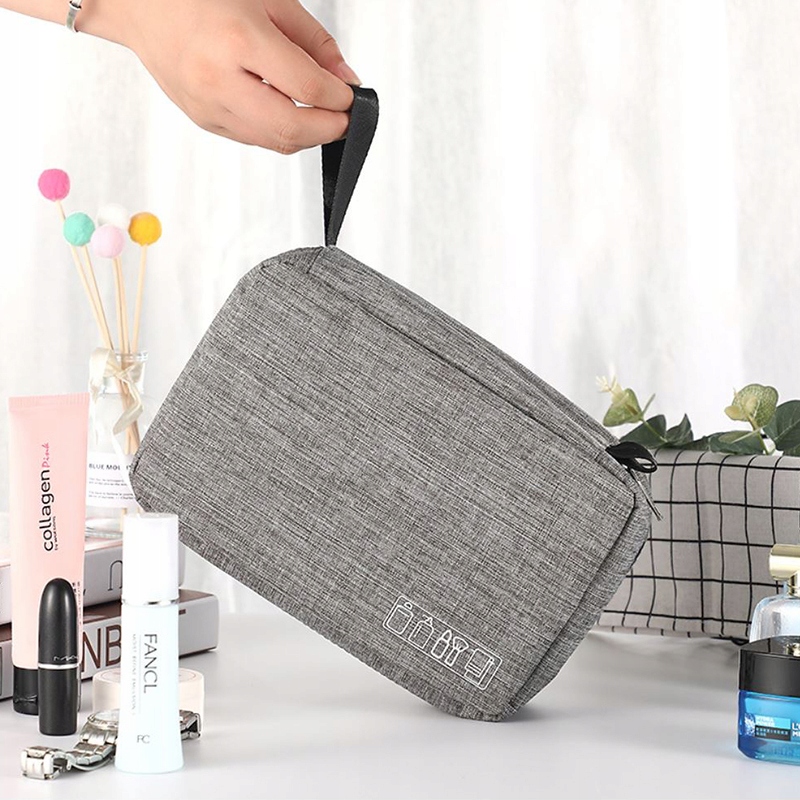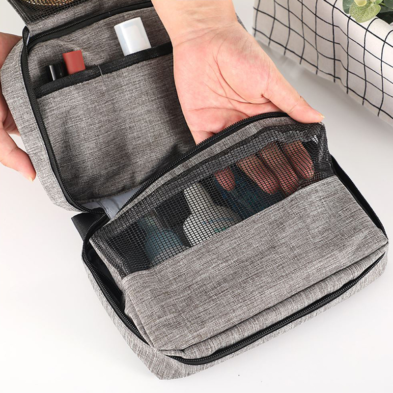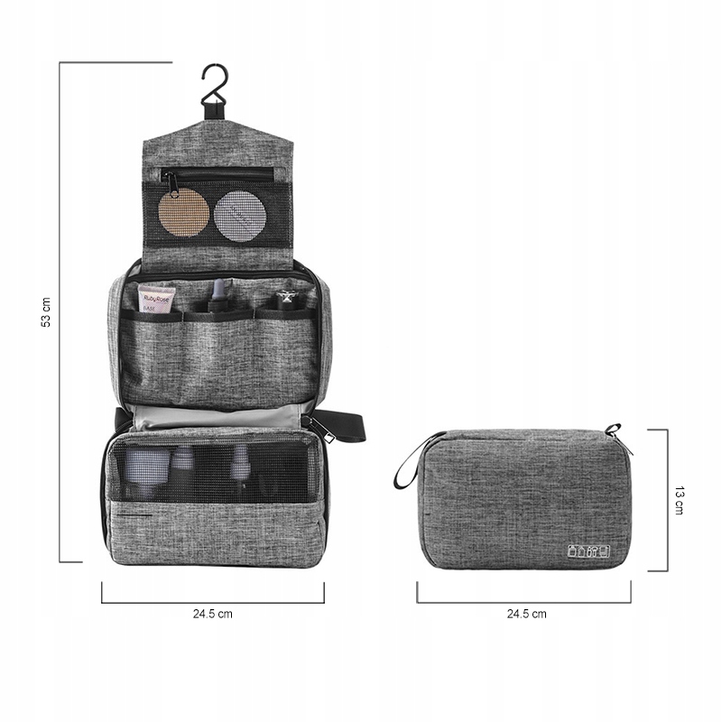 Исключительно удобная и в то же время вместительная косметичка серого цвета, которую можно повесить как удобный органайзер б>. Идеальное решение как для женщин, так и для мужчин, которые хотят с комфортом позаботиться о себе во время путешествия. Он прекрасно сохраняет косметику в порядке, а в разложенном виде делает каждую косметику «под рукой»..