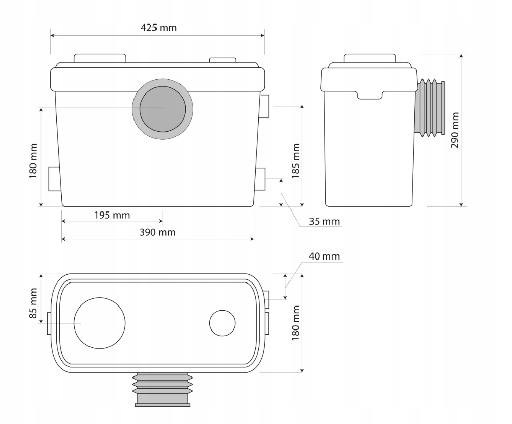 Насос идеально подходит для ванных комнат, где унитаз, умывальник или стиральная машина расположены ниже уровня канализационного стока. Благодаря трем входам к нему можно подключить несколько устройств одновременно, что делает его чрезвычайно функциональным решением.