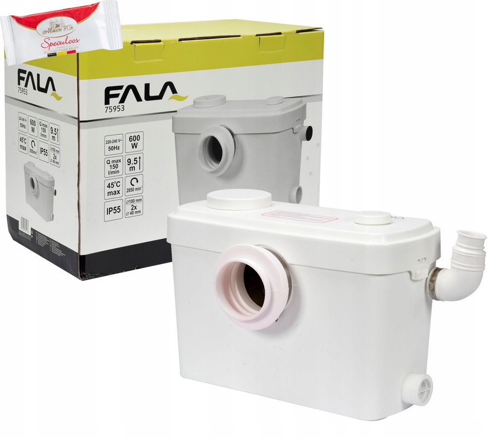 Эффективный санитарный насос с измельчителем, оснащенный тихим двигателем мощностью 600 Вт.