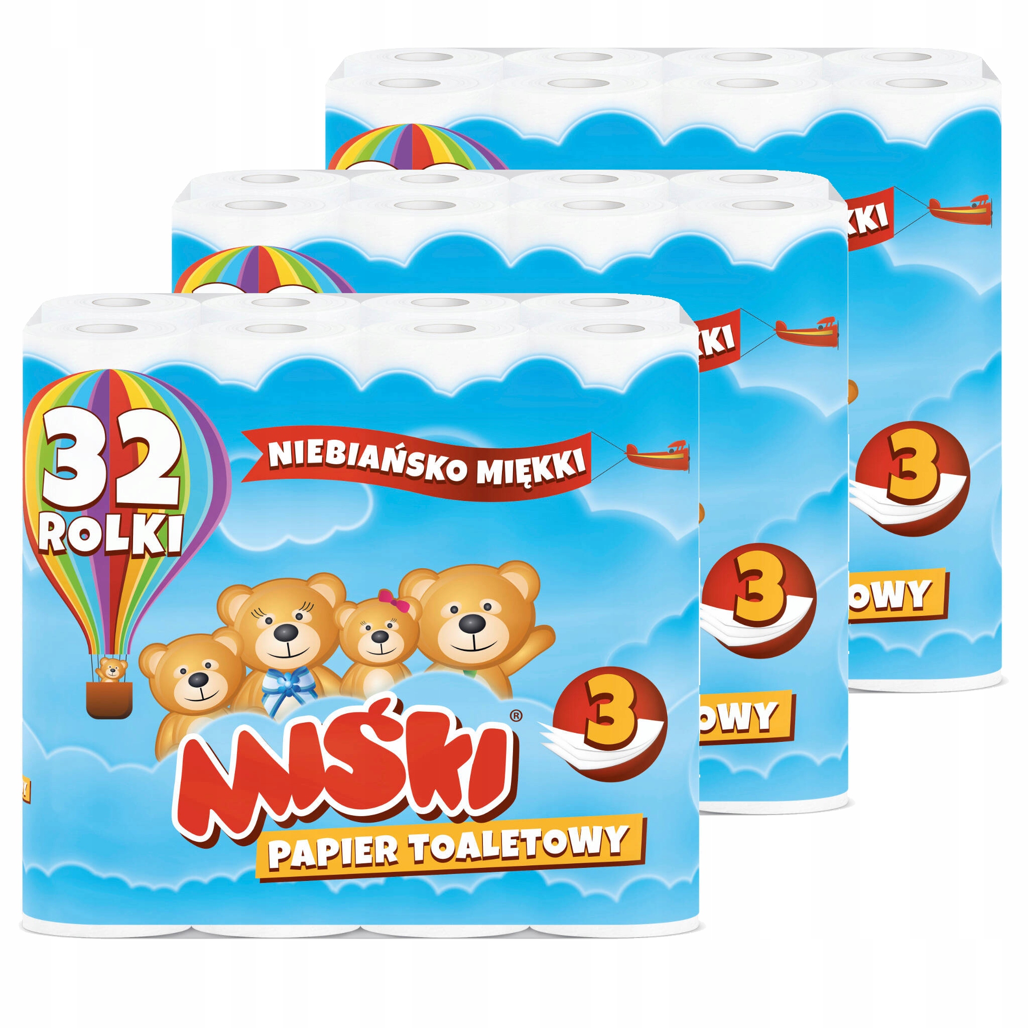 - Количество рулонов в упаковке: 3х 32 шт.