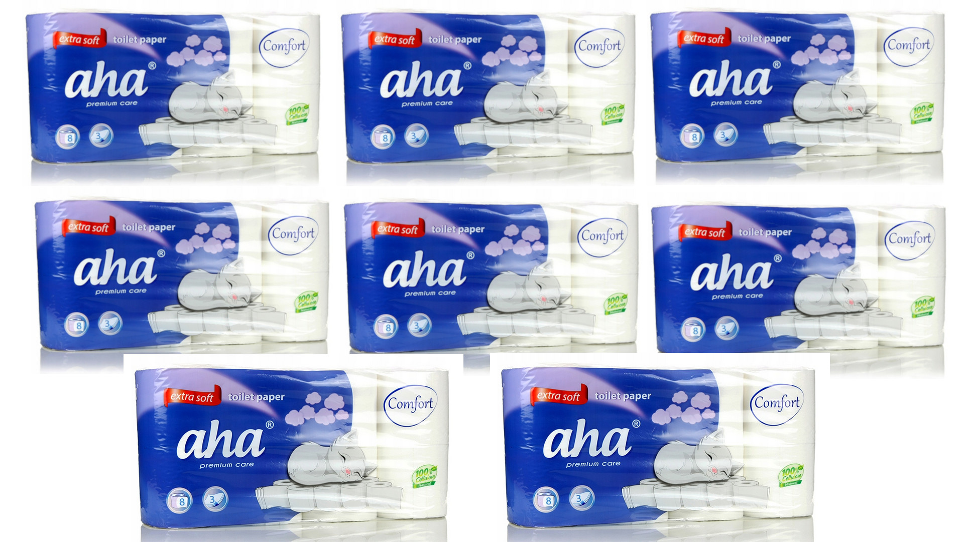 ТУАЛЕТНИЙ ПАПІР AHA PREMIUM CARE 64 РОЛИКИ 3-ШАРОВИЙ ДОВГИЙ РУЛОН 18 М