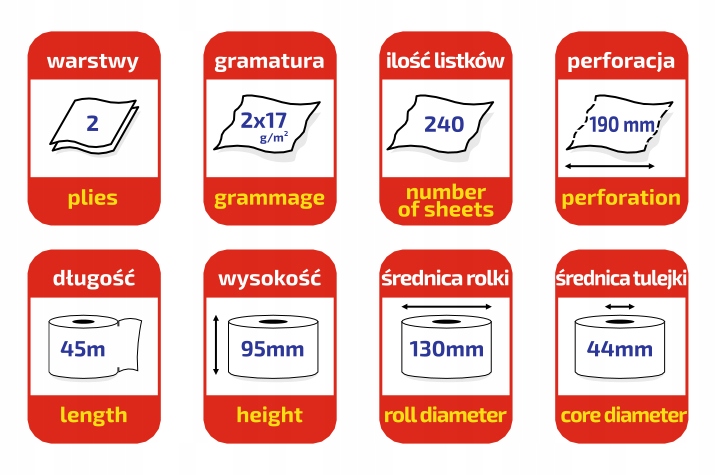 - количество в упаковке: до 48 рулонов (в упаковке 8 рулонов)