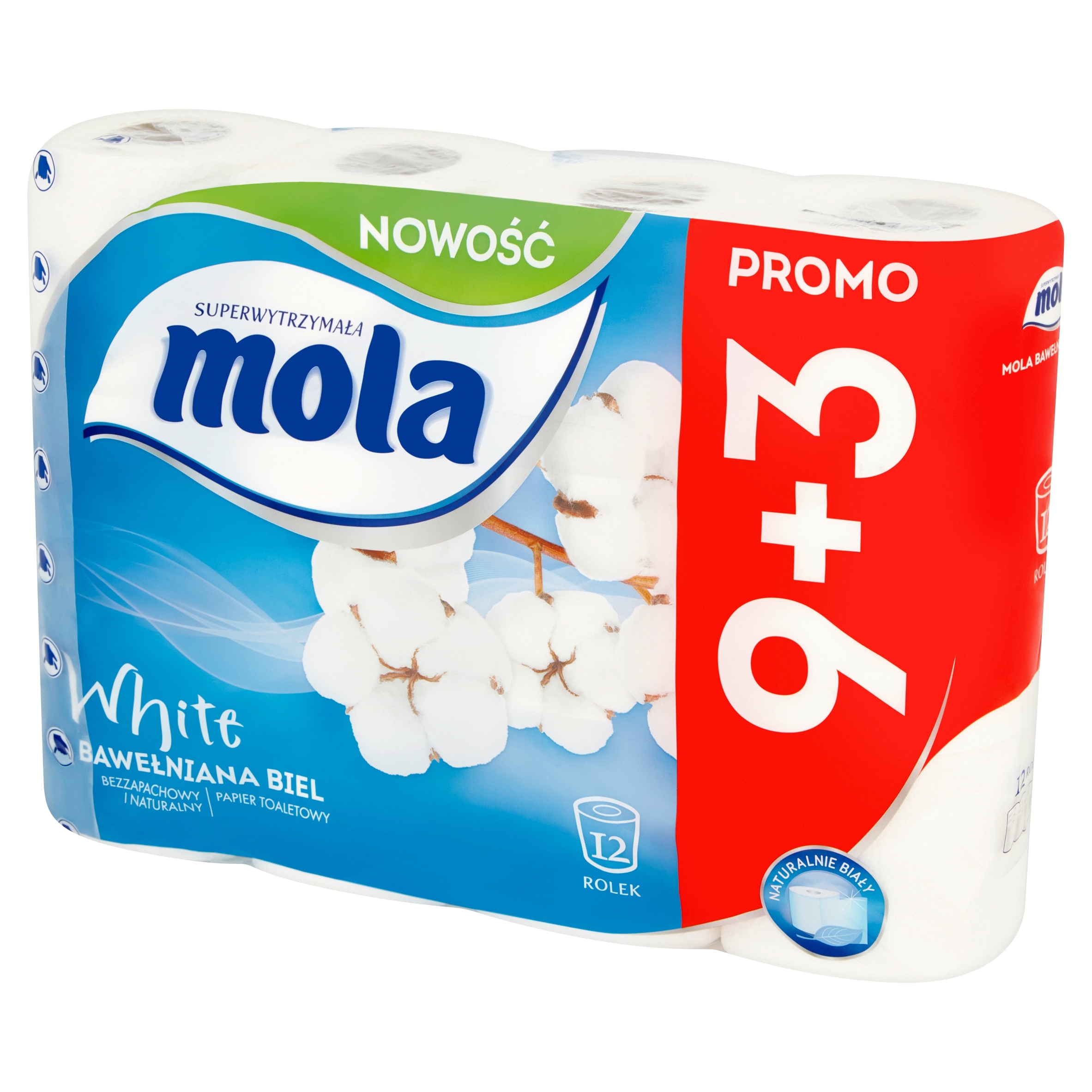 Туалетная бумага, гигиенический продукт, 100% папиросная бумага, Натуральная, прочная и без запаха туалетная бумага Mola. Nowa Mola Cotton White — белая туалетная бумага без запаха. Она натуральная, а благодаря двум прочным слоям очень эффективна. Туалетная бумага Mola Cotton White – натуральная и долговечная.