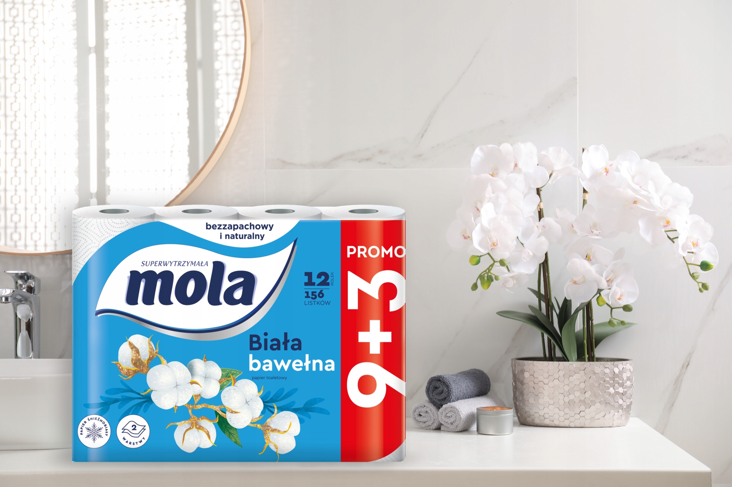 Туалетная бумага Mola Cotton White – натуральная и долговечная.
