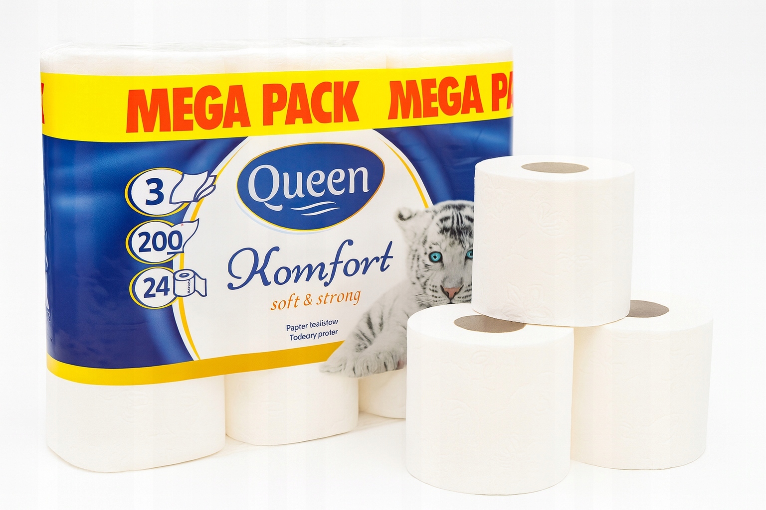 Туалетная бумага Queen Komfort Soft&Strong — это сочетание исключительной мягкости и надежной прочности, обеспечивающее комфорт повседневного использования.
