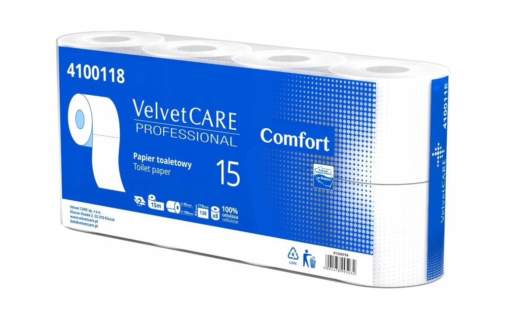 Мягкая и прочная бумага Velvet CARE Professional — наиболее часто используемый формат бумаги, который подходит для большинства стандартных держателей. Предназначен для мест с низкой и средней проходимостью.