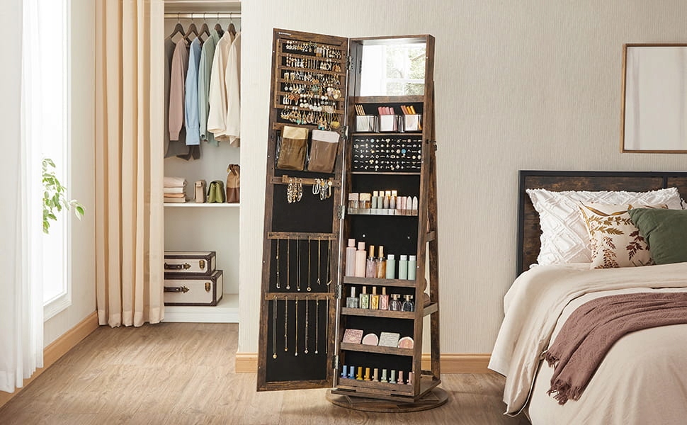 Элегантный и функциональный, вращающийся ювелирный шкаф идеально подходит для спальни, гардероба, ванной комнаты или коридора.