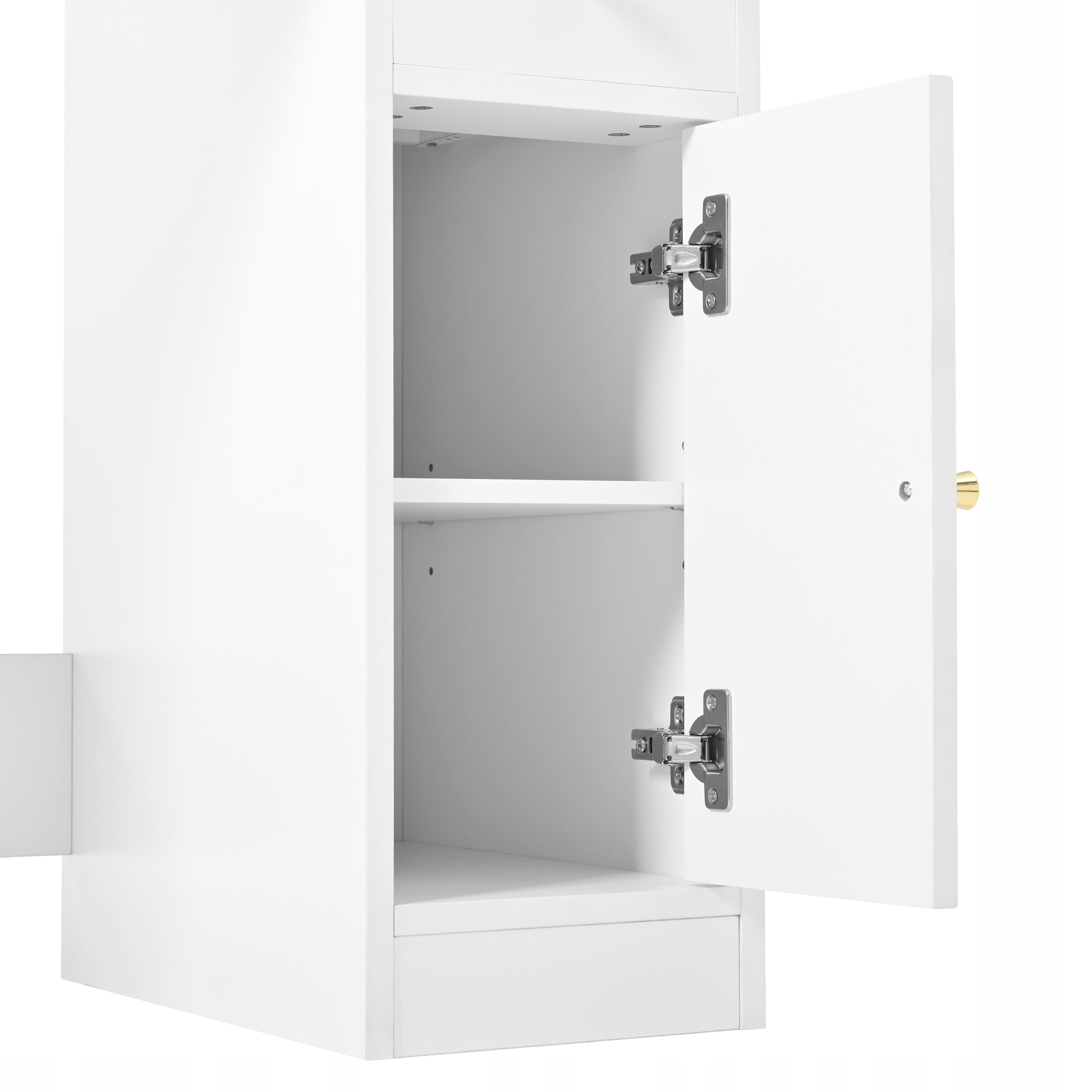 - Это идеальное сочетание туалетного столика и шкафов для ювелирных изделий с 6 ящиками и 4 дверями, в которых можно организовать косметику и духи.