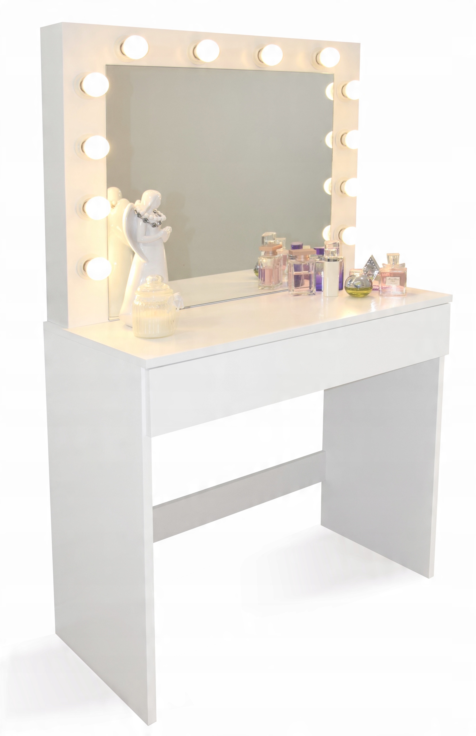 Туалетный столик с зеркалом и подсветкой, безусловно, станет отличным подарком для каждой женщины. В просторном ящике можно разместить большое количество ожерелий, колец и браслетов. 12 светодиодных ламп добавляют шарма и элегантности, а внешнее зеркало, как известно, просто необходимо в каждой спальне. Каждая женщина почувствует себя ГОЛЛИВУДСКОЙ