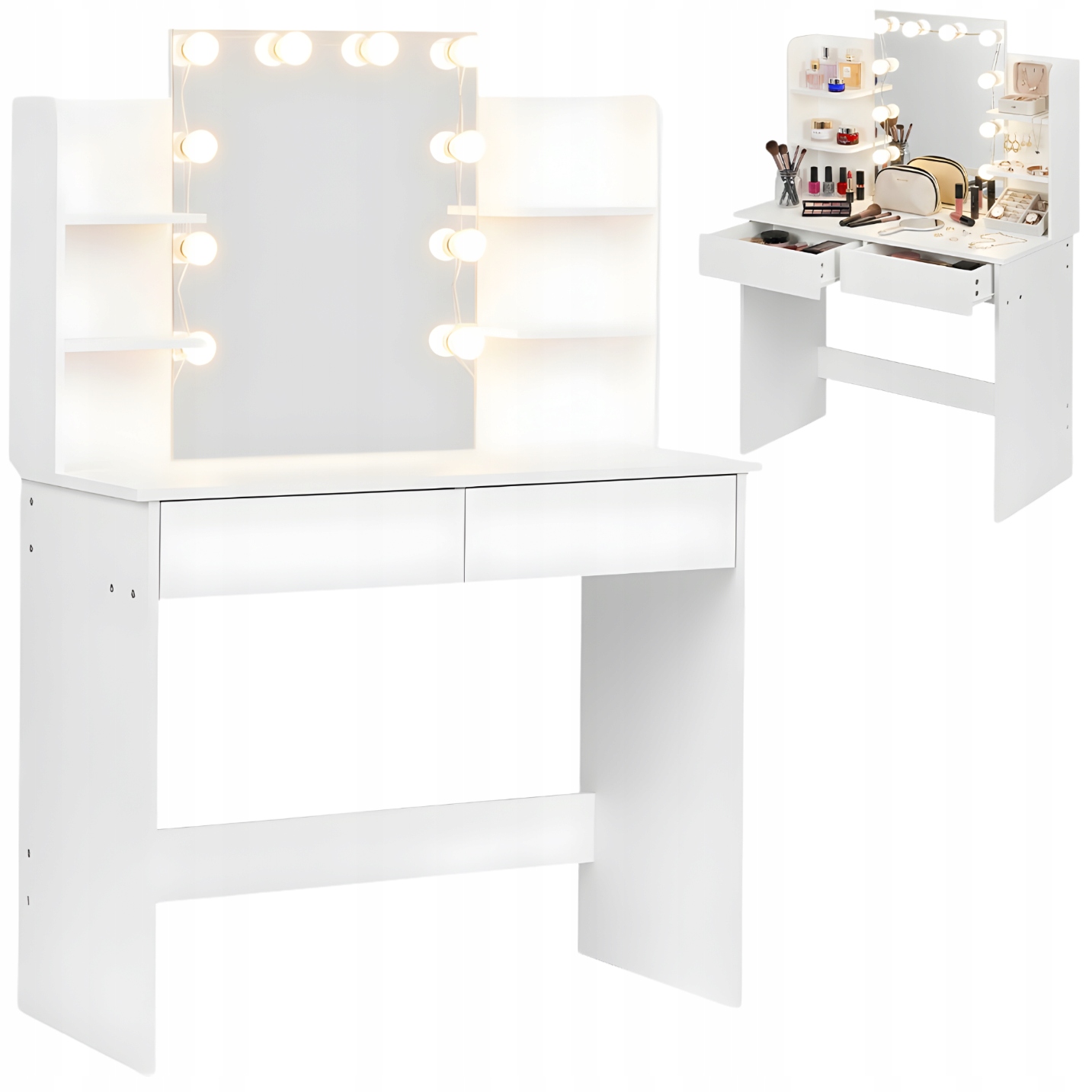 БЕЛЫЙ КОСМЕТИЧЕСКИЙ СТОЛИК С ЗЕРКАЛОМ, СВЕТОДИОДНОЙ ПОДСВЕТКОЙ, 4 ПОЛКИ, 2 ЯЩИКА