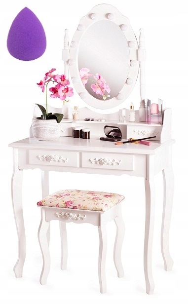 В комплект входит косметический туалетный столик с поворотным зеркалом и удобной табуреткой.