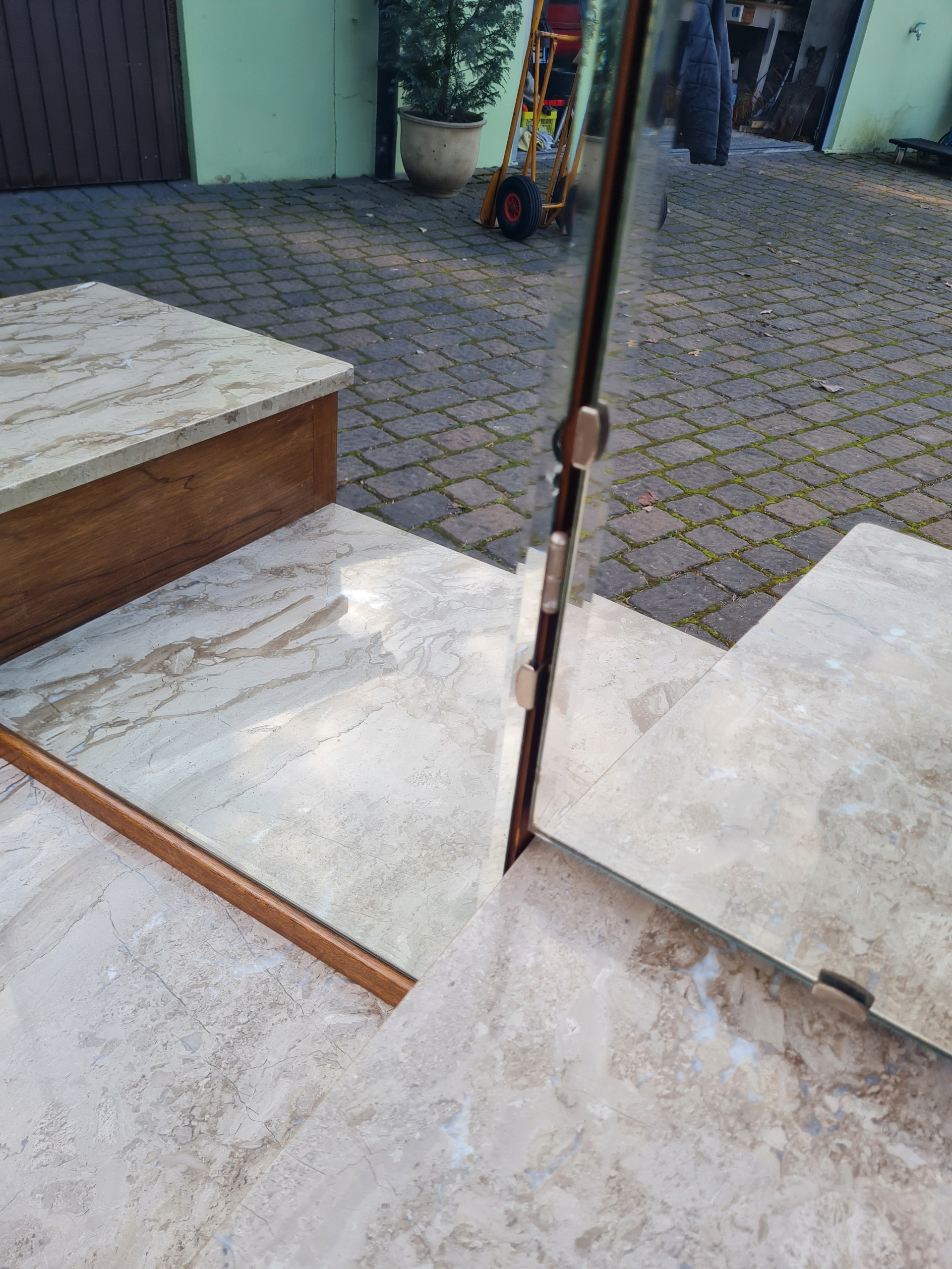 Небольшие вмятины на зеркале в левом нижнем углу и возле петель.