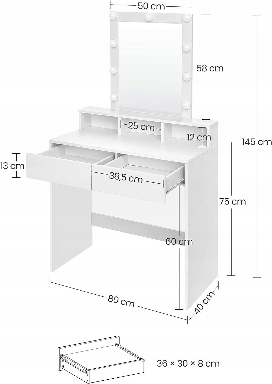 ТУАМЕТНИЙ СТОЛИК БІЛИЙ З LED ПІДСВІТЛЕННЯМ + ДЗЕРКАЛО 80СМ