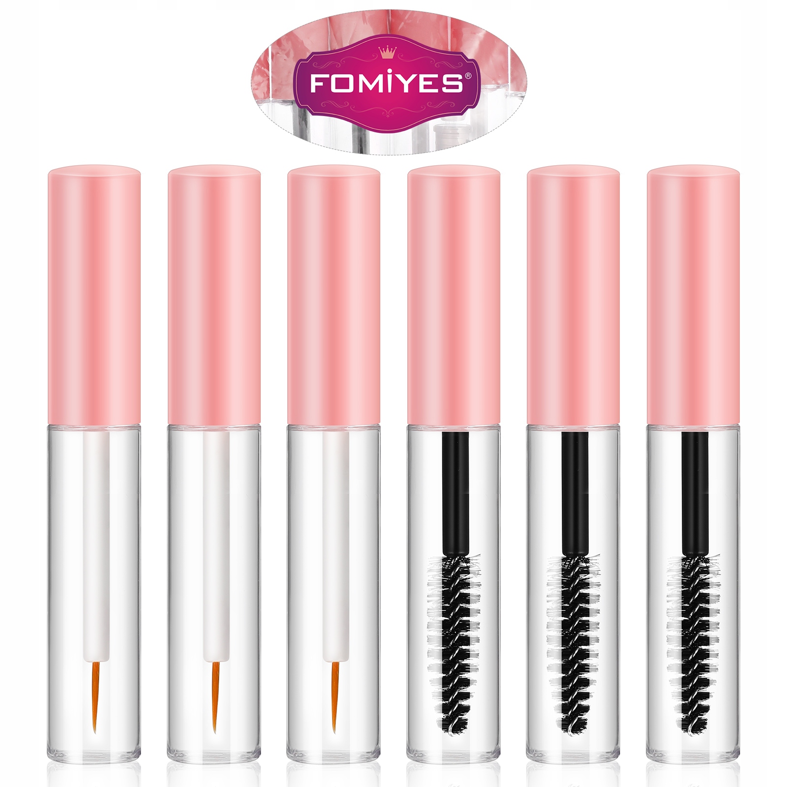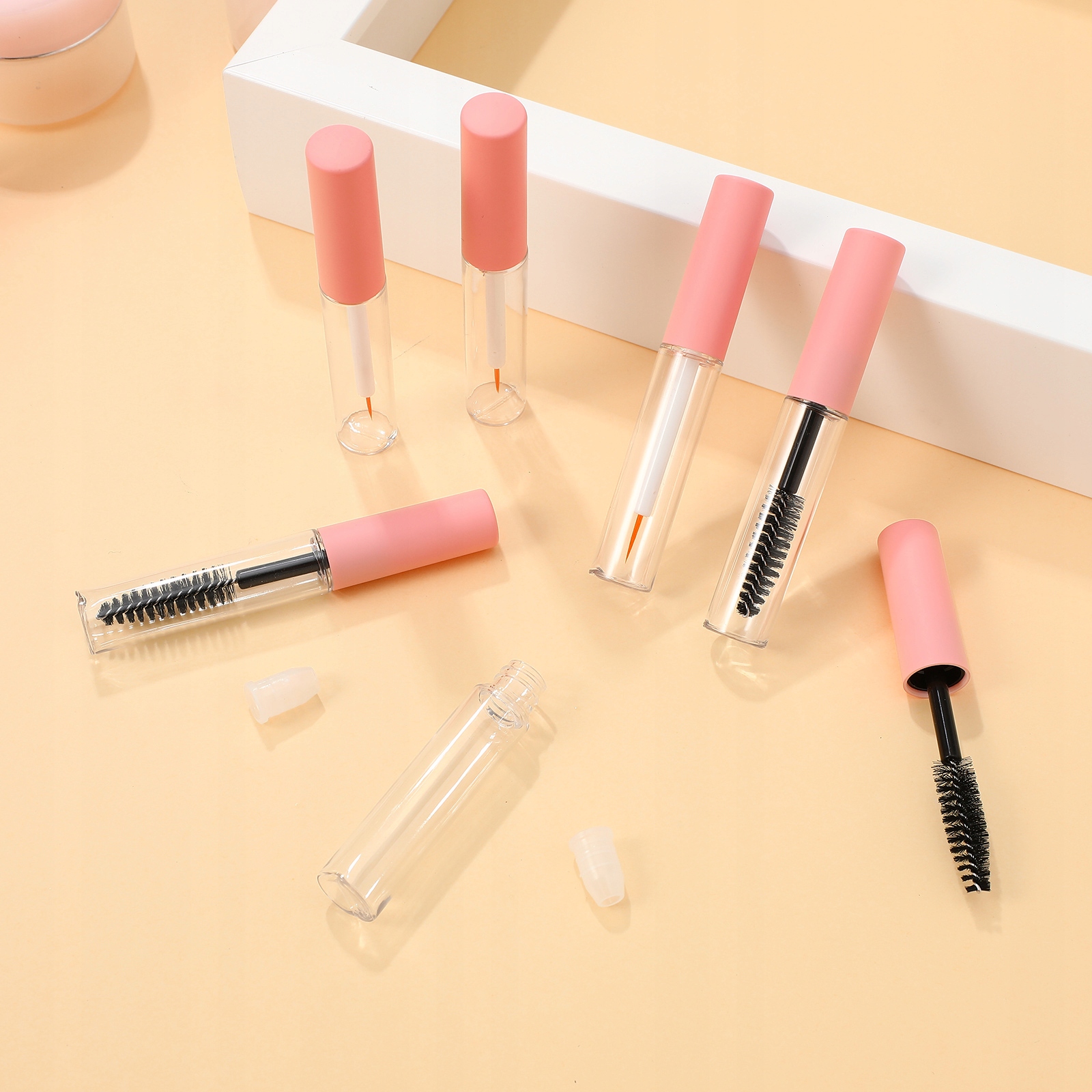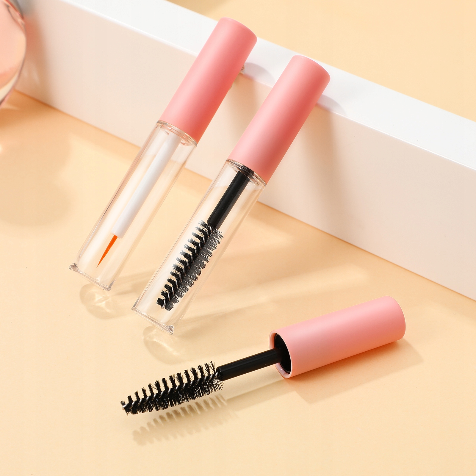 Туби для туші для макіяжу в рожевих контейнерах порожні