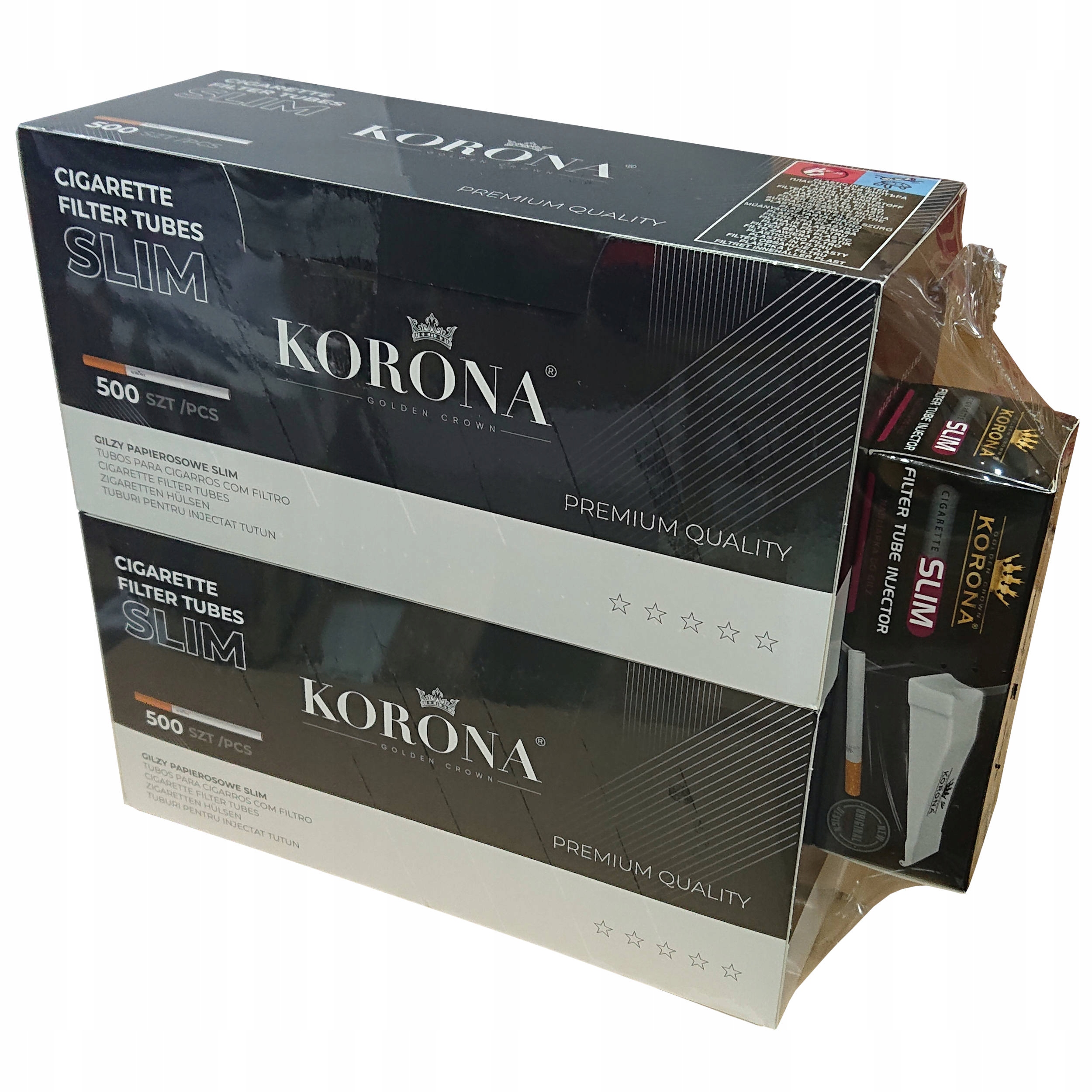 Идеальная стартовая упаковка из 1000 штук высококачественных тонких гильз Korona Slim со свободным тонким наполнителем, идеально подходящая для тонких сигарет и идеально подходящая ко всем гильзам семейства Korona Slim.