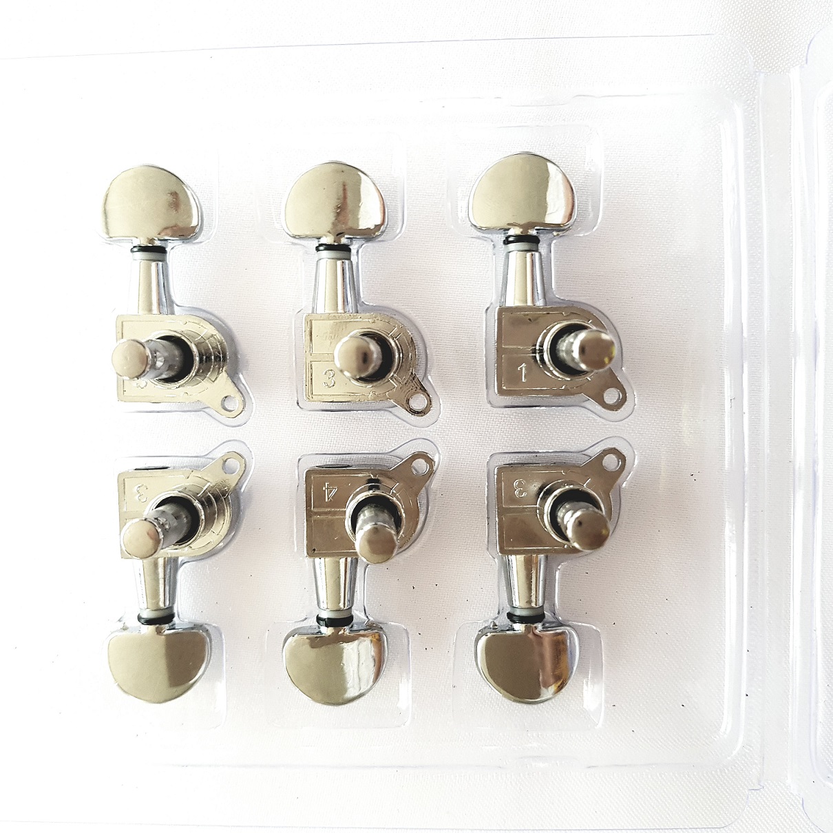 Универсальный набор содержит все необходимые элементы для сборки гитарных колков: 6 ключей (3 правых, 3 слева), крепежные винты, втулки. Ключи для установки в два ряда.