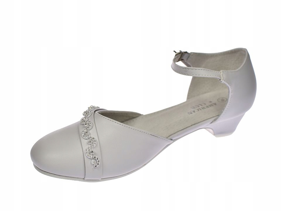 Белые балетки для девочек на высоком каблуке, застегивающиеся на ремень, бренд American Club