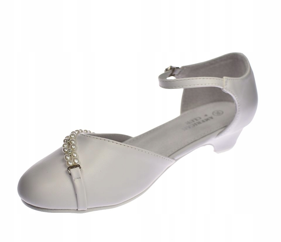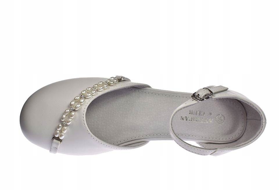 Белые балетки для девочек на высоком каблуке, застегиваются на ремень, бренд American Club