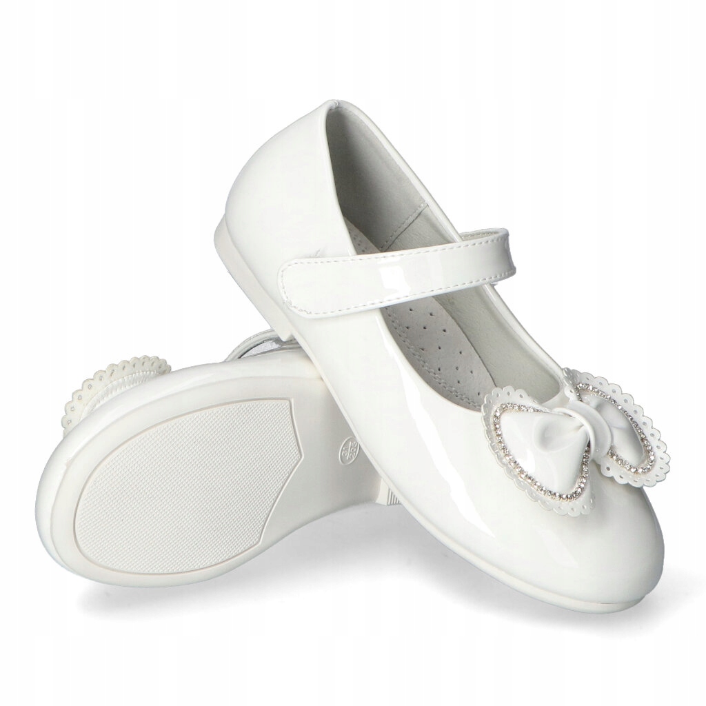 <р> - верх выполнен из высококачественной лакированной кожи. <р> - салон обтянут удобной экологической кожей для обеспечения комфорта во время использования <р> - внутренняя вставка из натуральной кожи <р> - Подошва толщиной 1 см обеспечивает достаточную стабилизацию <р> - Застежка-липучка облегчает надевание и регулировку обуви. <р> - белый цвет и элегантная модель порадуют каждого <р> - они идеальны в качестве обуви для причастия и дополнения ко многим стилямТАБЛИЦА РАЗМЕРОВ: