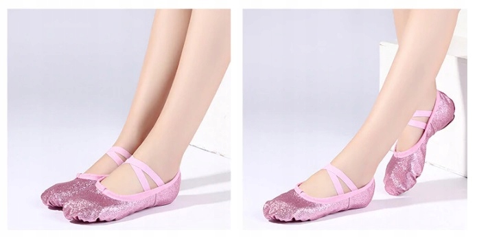 Балетки изготовлены из мягкого канваса с пропиткой - блестки красиво переливаются и не опадают. Подошва усилена натуральной кожей, что делает их нескользящими и более прочными.
