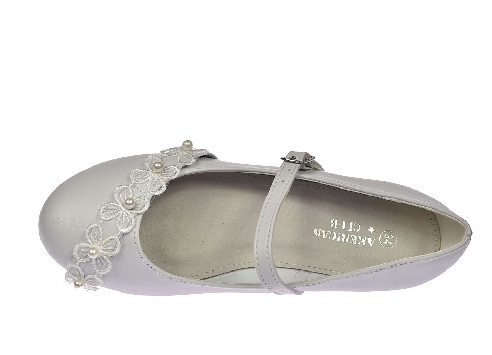 Белые балетки для девочек на высоком каблуке и ремешке, бренд American Club